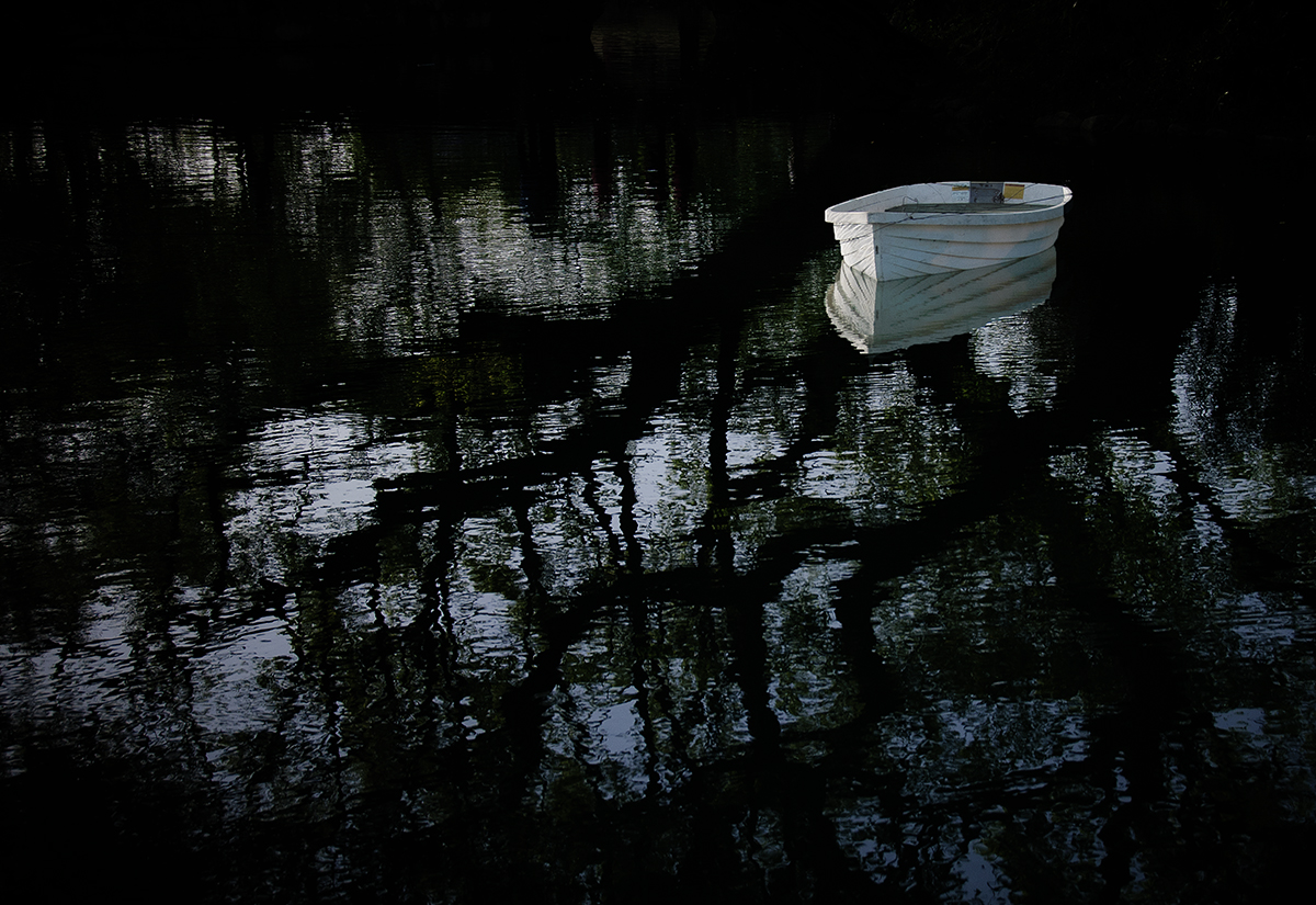 나무 그늘 아래서 쉬고 있는 저 햐얀 쪽배는