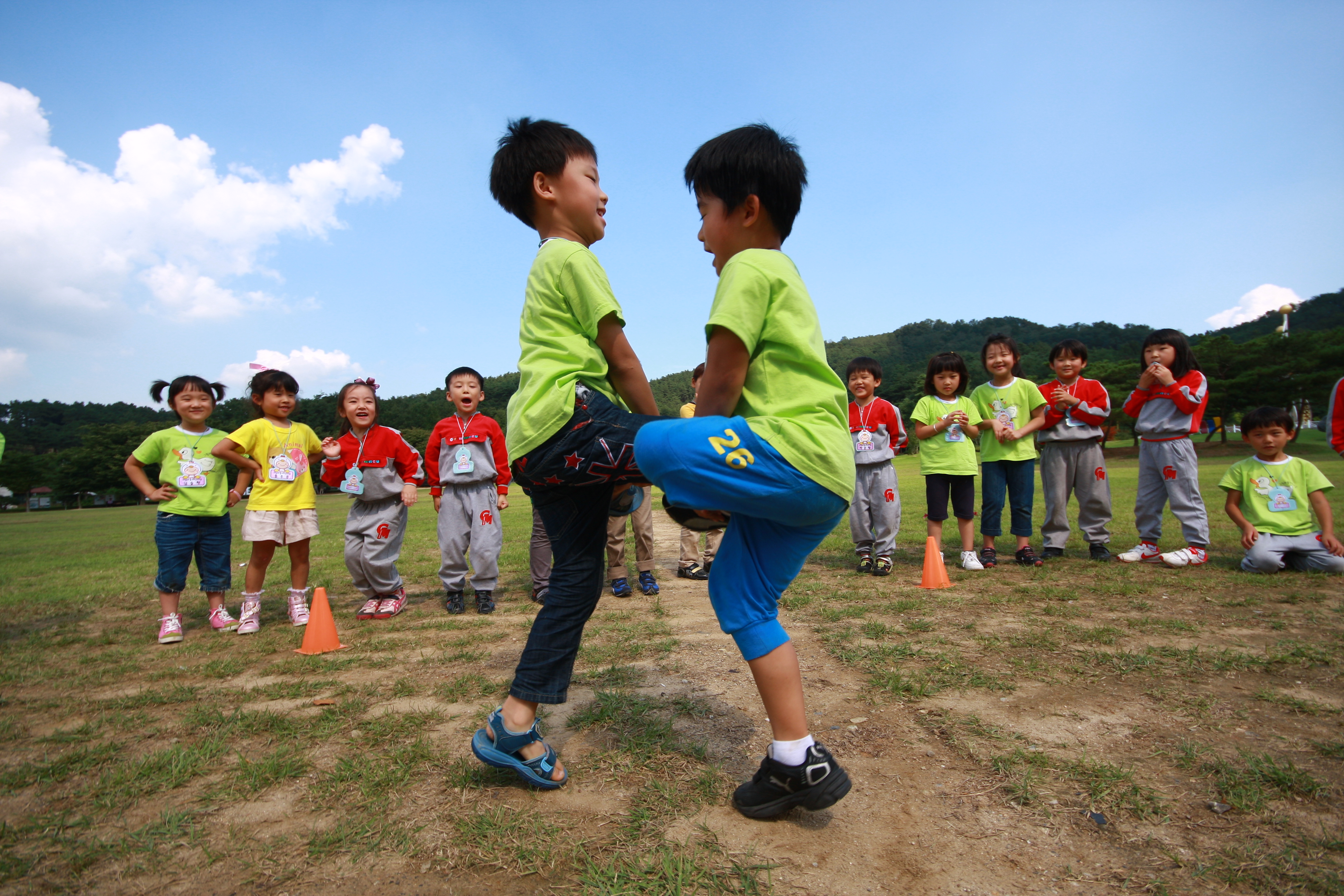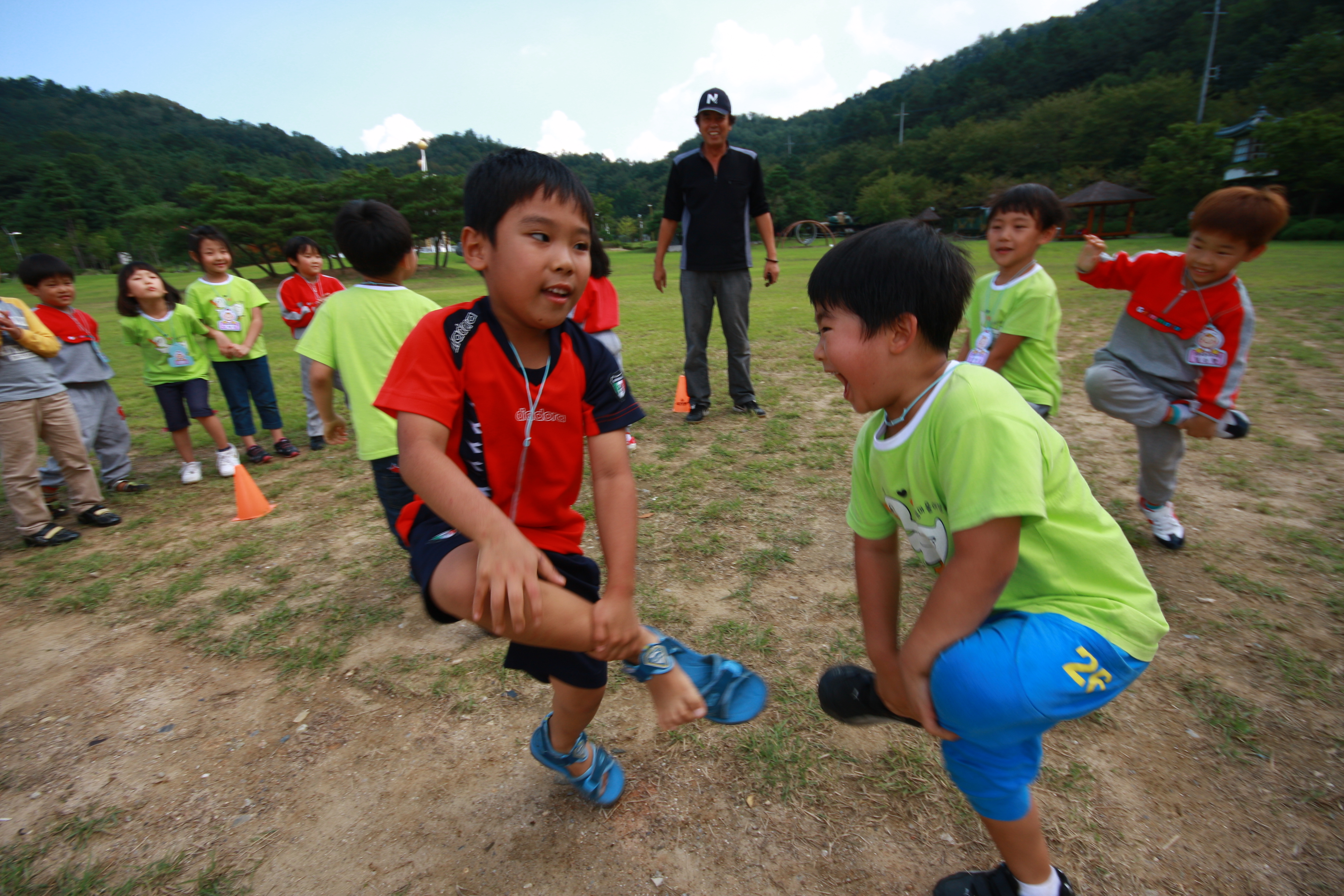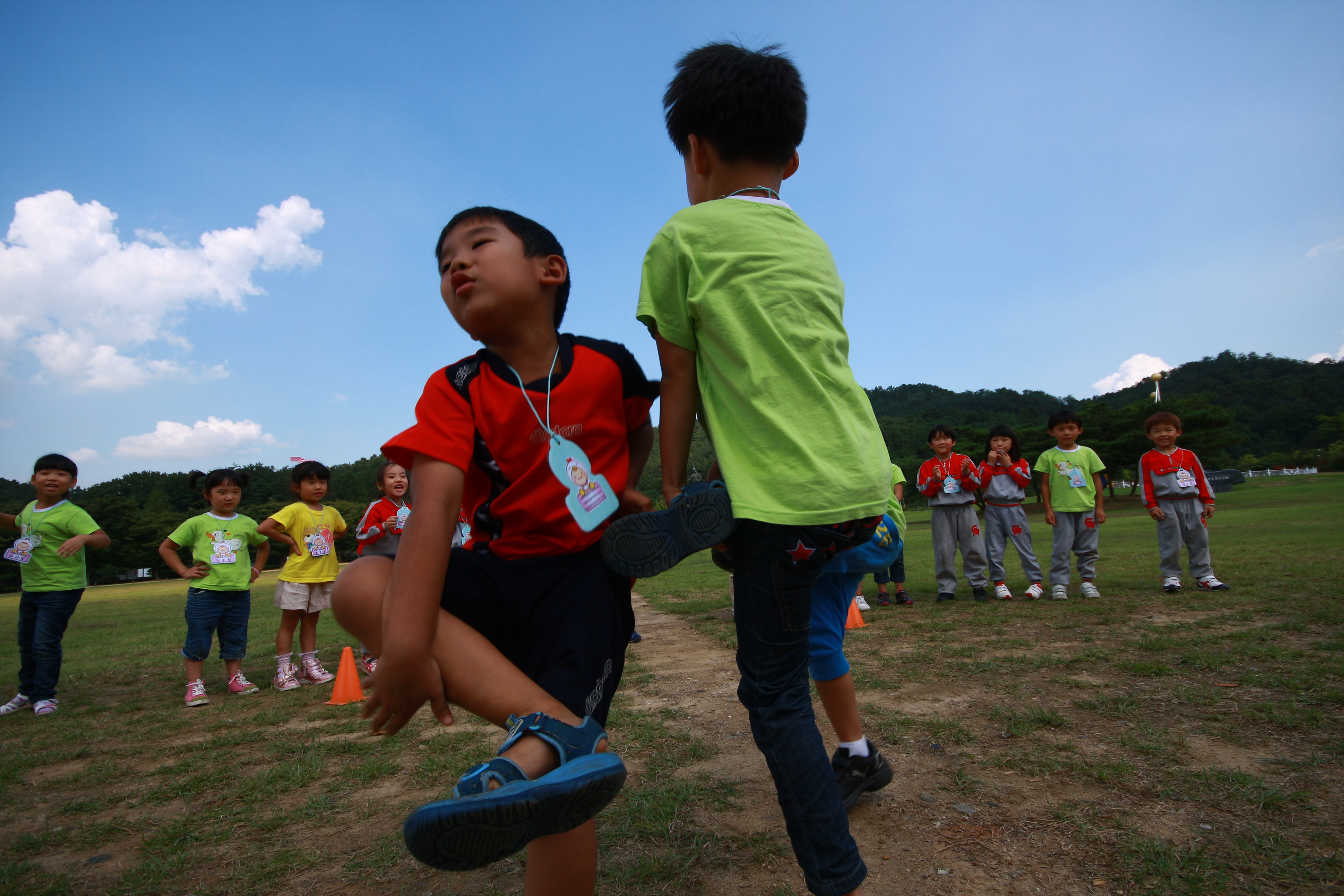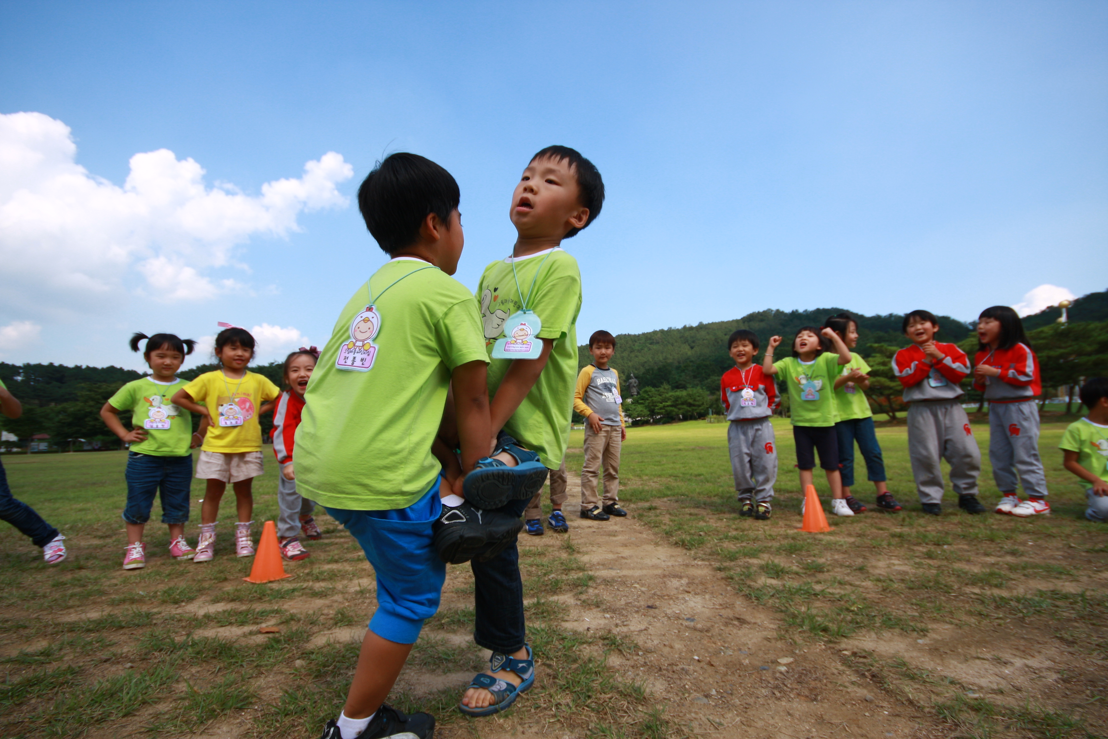 넓은 잔디빝에 친구들과 어울려....
