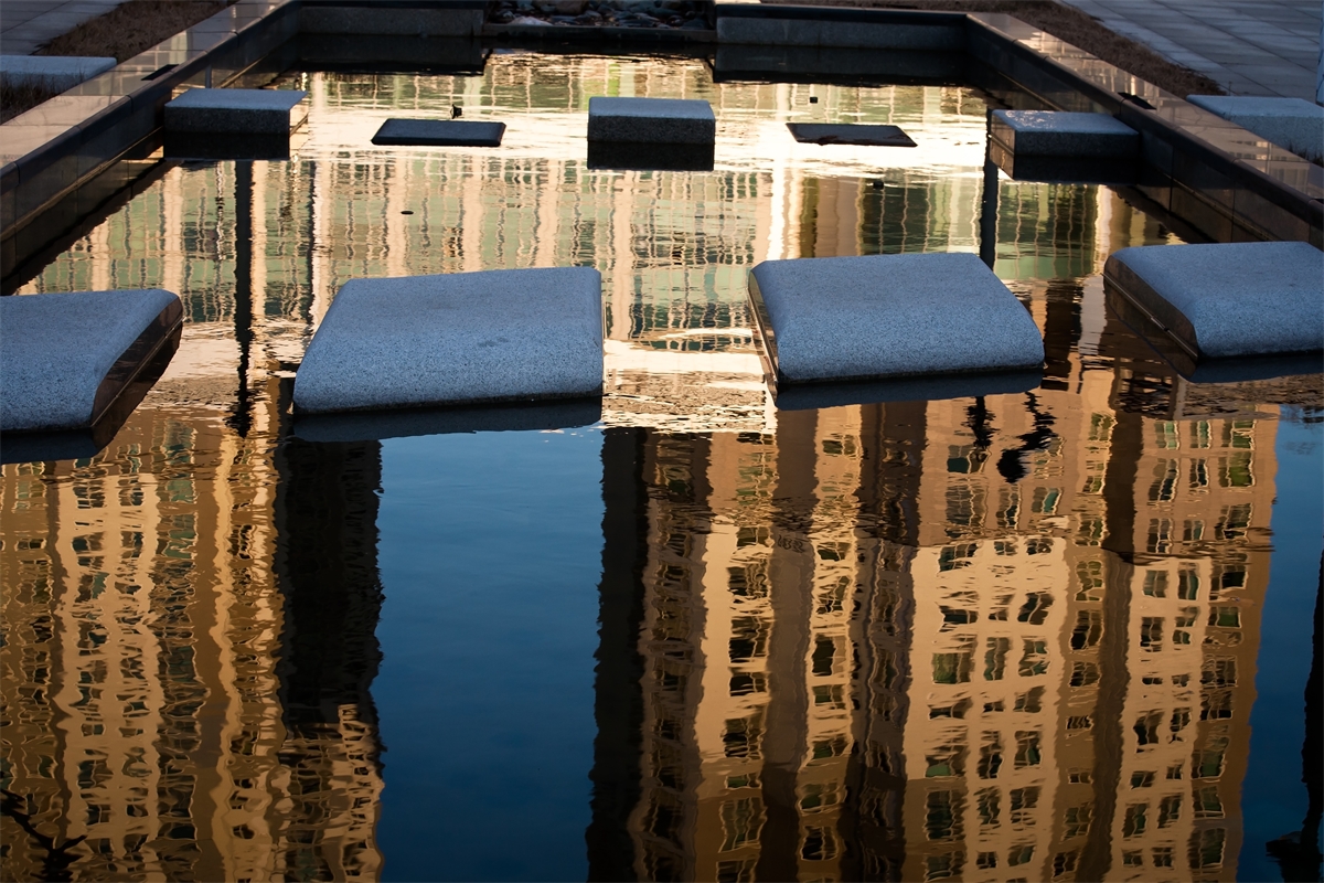 수많은 사람들이 성냥갑 같은 상자속에서 각각 살고있다. 옆에서도 앞에서도 보이지 않는 그들만의 세상 그들에게 소통의 징검다리 처럼 놓여진 모습..... 아주 적은 고인물에 커다란 아파트도 쏙 들어가있다..