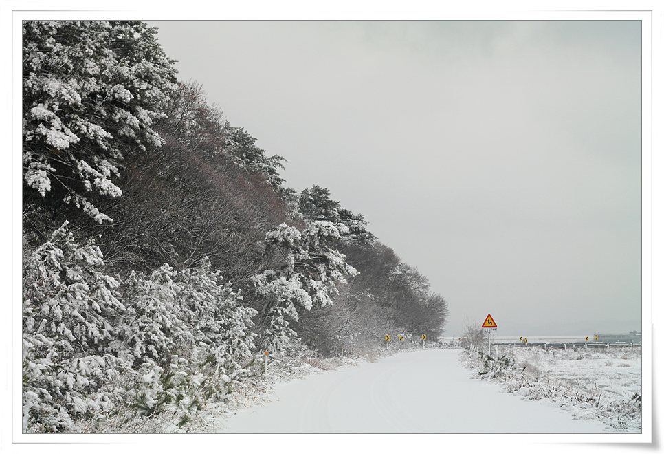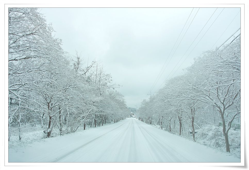 나가보니 길이 조용하고 평안하게 눈이 소복히 쌓인 모습입니다..