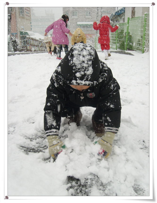 눈내리는 모습을 보고 눈사람만들자고~~아우성~~^^