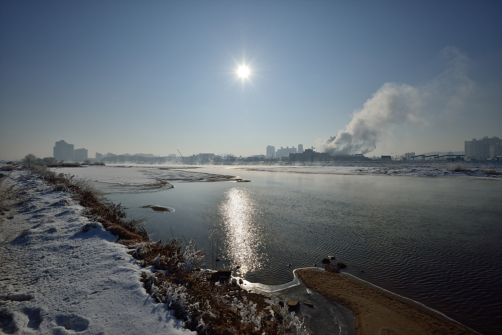 해가 중천으로 떠오르고 있어도 여전히 멋있는 곡교천의 겨울 풍경입니다.