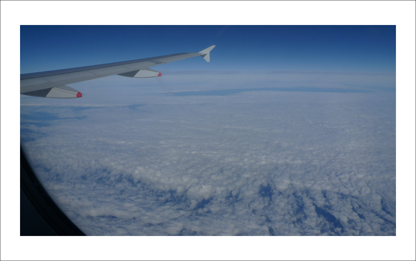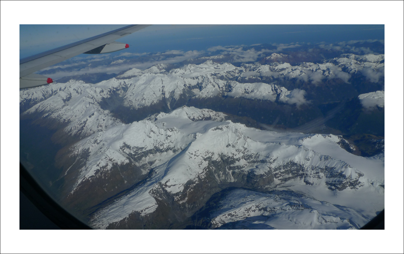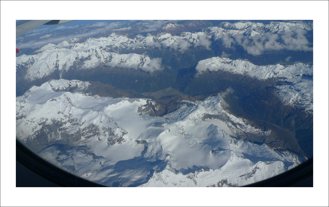 공해가 없는 오클랜드 북섬에서 남섬으로 가는 비행기 안에서