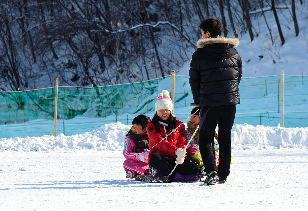 아이들은 완전 신난 얼음 썰매타기...![]()