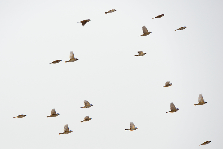 한무리 참새들이 나들이 하는 모습입니다.