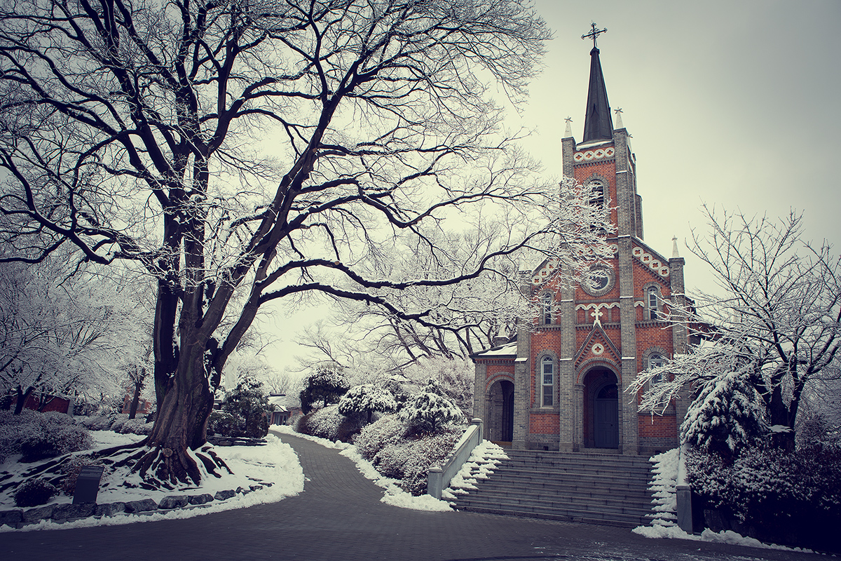 하얀눈 내린날 공세리 성당을 담아봅니다.