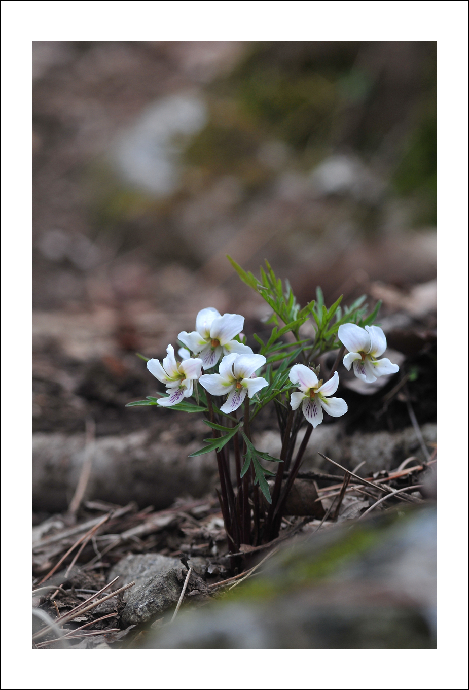 흰색의 꽃잎 안쪽으로 짙은 줄무늬가 나 있어 다른 제비꽃들과 확연히 구분되며 향기도 좋다.