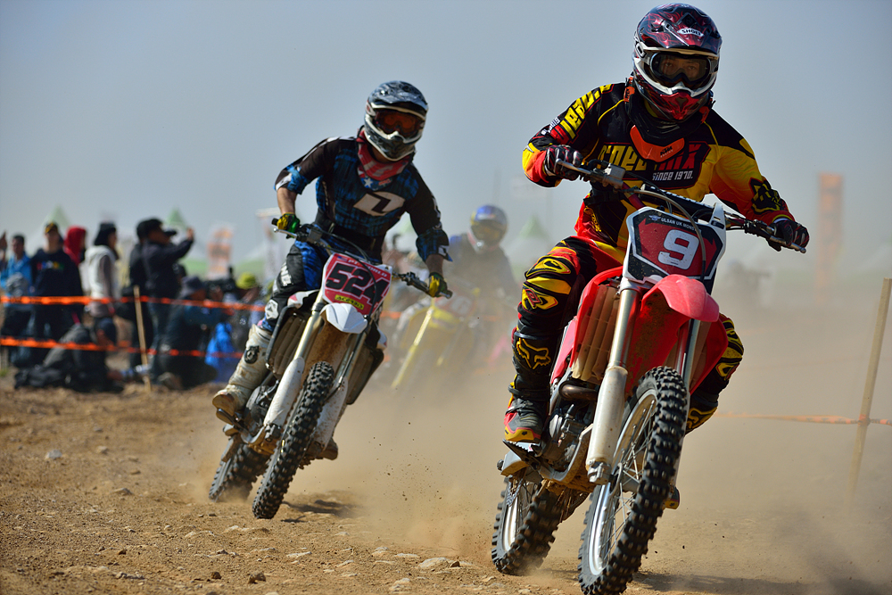 새만금 모터사이클대회에서 선수들이 최선을 다하는 모습입니다.