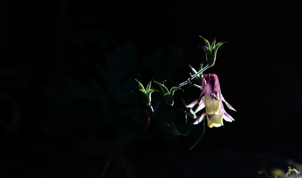캠핑장 한구석에 소박하고 외롭게 피어난 매발톱 꽃