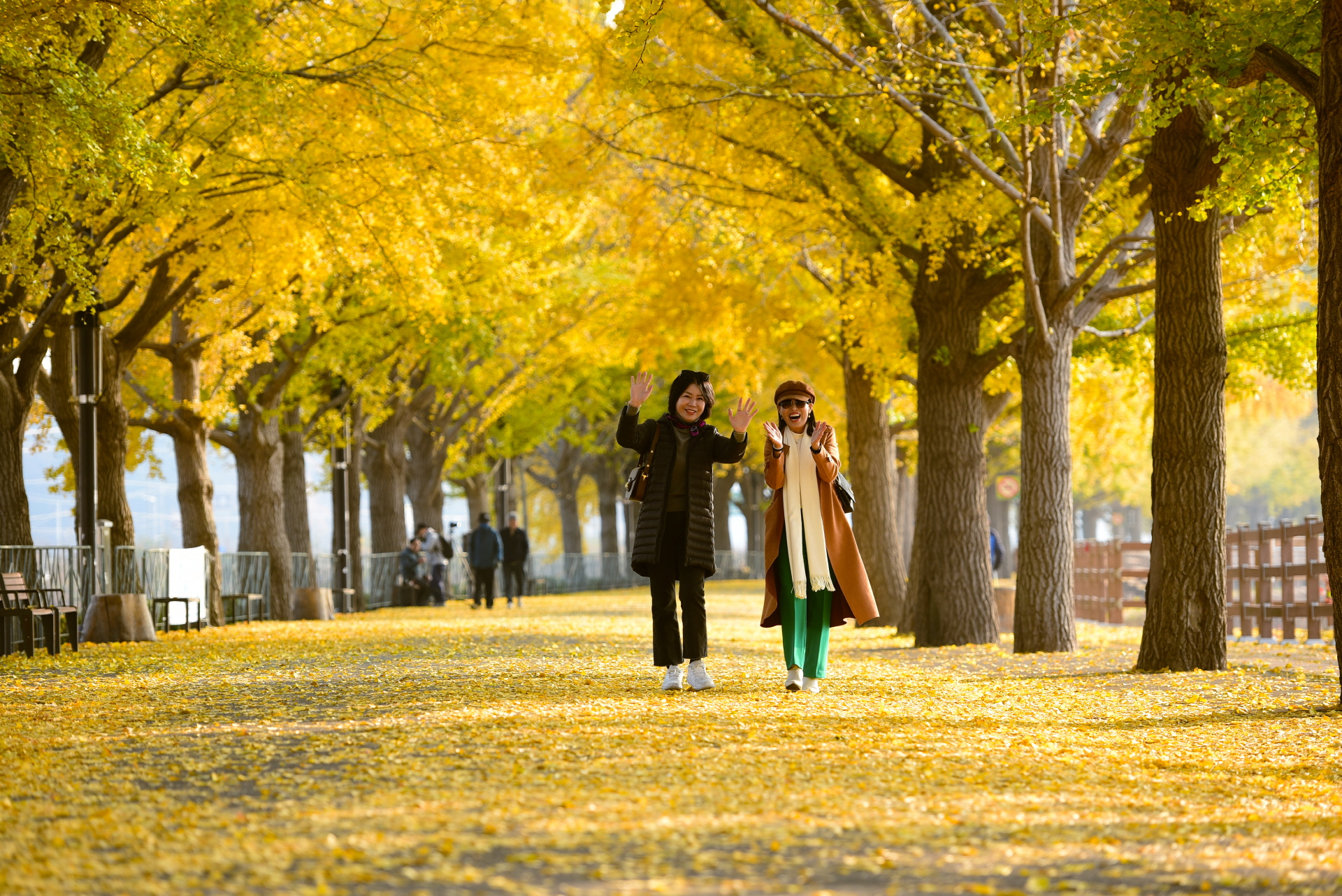 노랗게 물든 풍경 속에서 웃음이 절로 나는 순간을 담는다