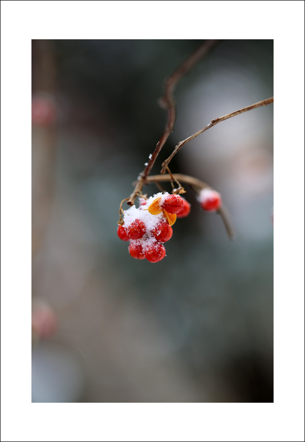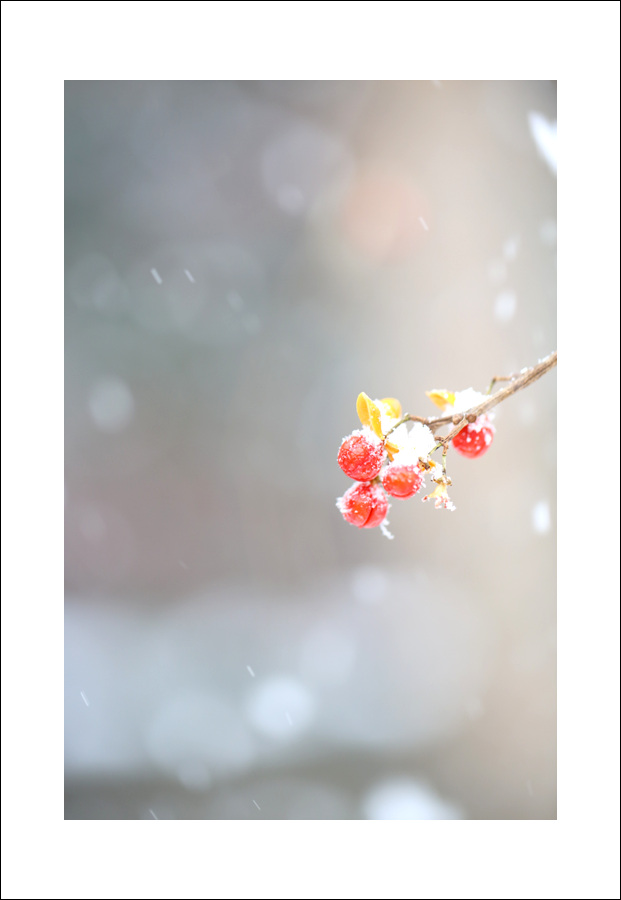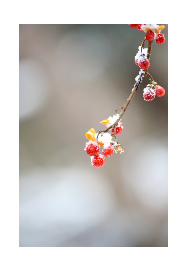 세찬눈보라속에서 더 이쁜모습 뽐내던 노박덩굴의 모습