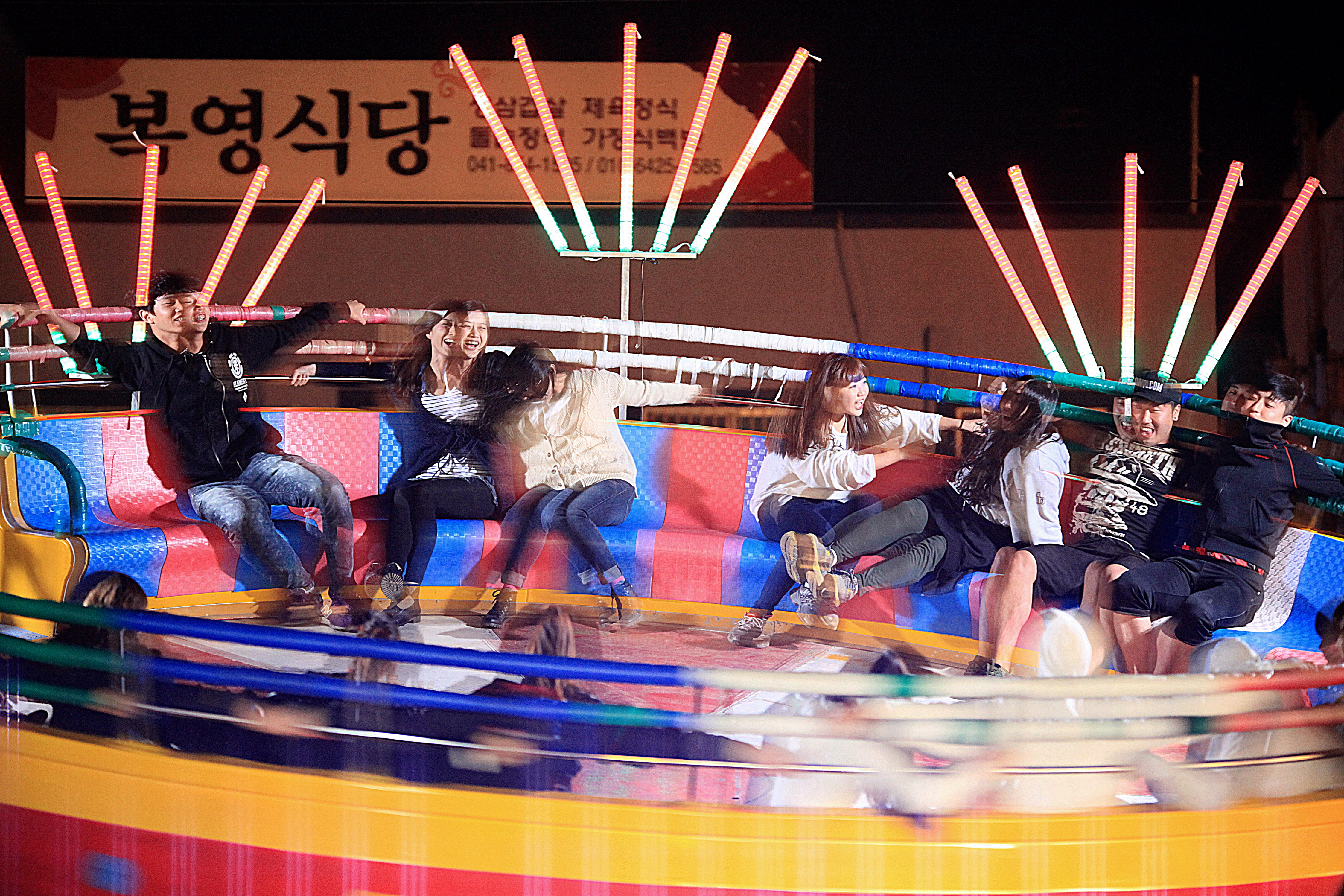 제58회 백제문화제가 부여, 공주, 논산일원에서 행사를 하고있습니다 야시장에서 디스코팡팡을 타는 학생들이 유체이탈을 하는것 같네요