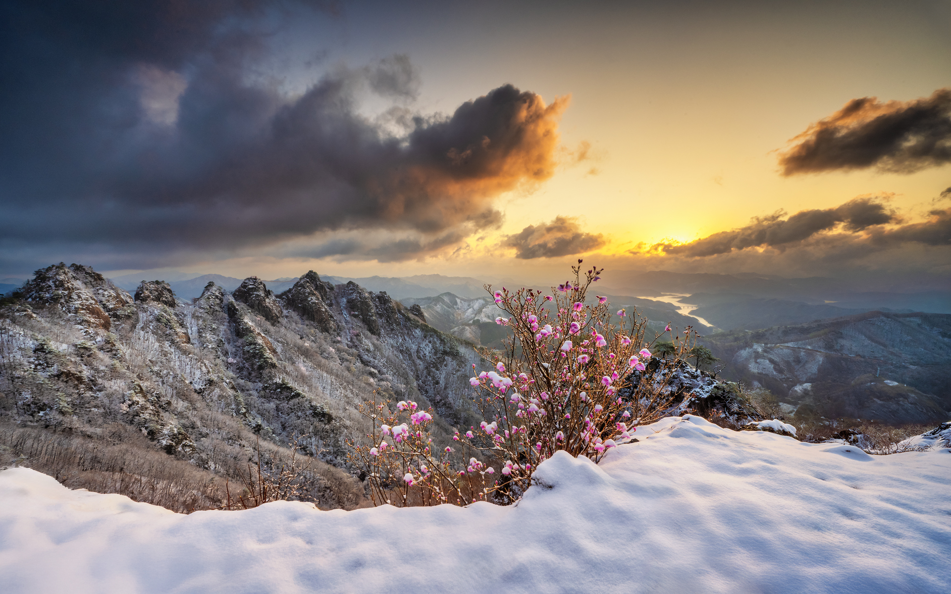 진달래가 한창피는 시기에 웬 눈이내려