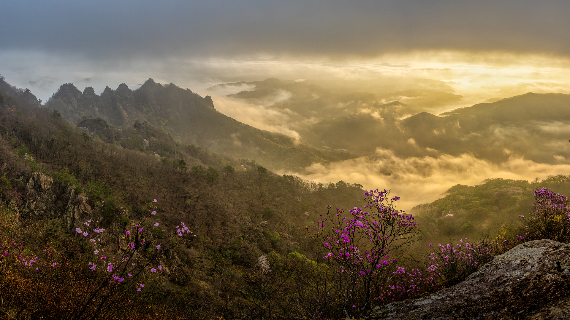 진힌 안갯속 곰탕이 느닷없이 벗겨지며 시야에 들어온 순간