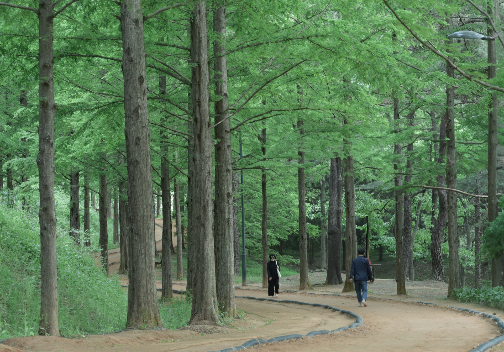 맨발로 걸으며 차거운 느낌과 자연속에서  마음이 풍성해짐을 본다