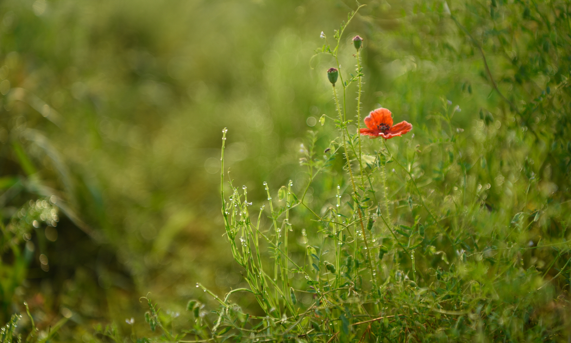 풀잎위에 맺힌 이슬방울이 마치 작은 진주같이 빛나는 순간