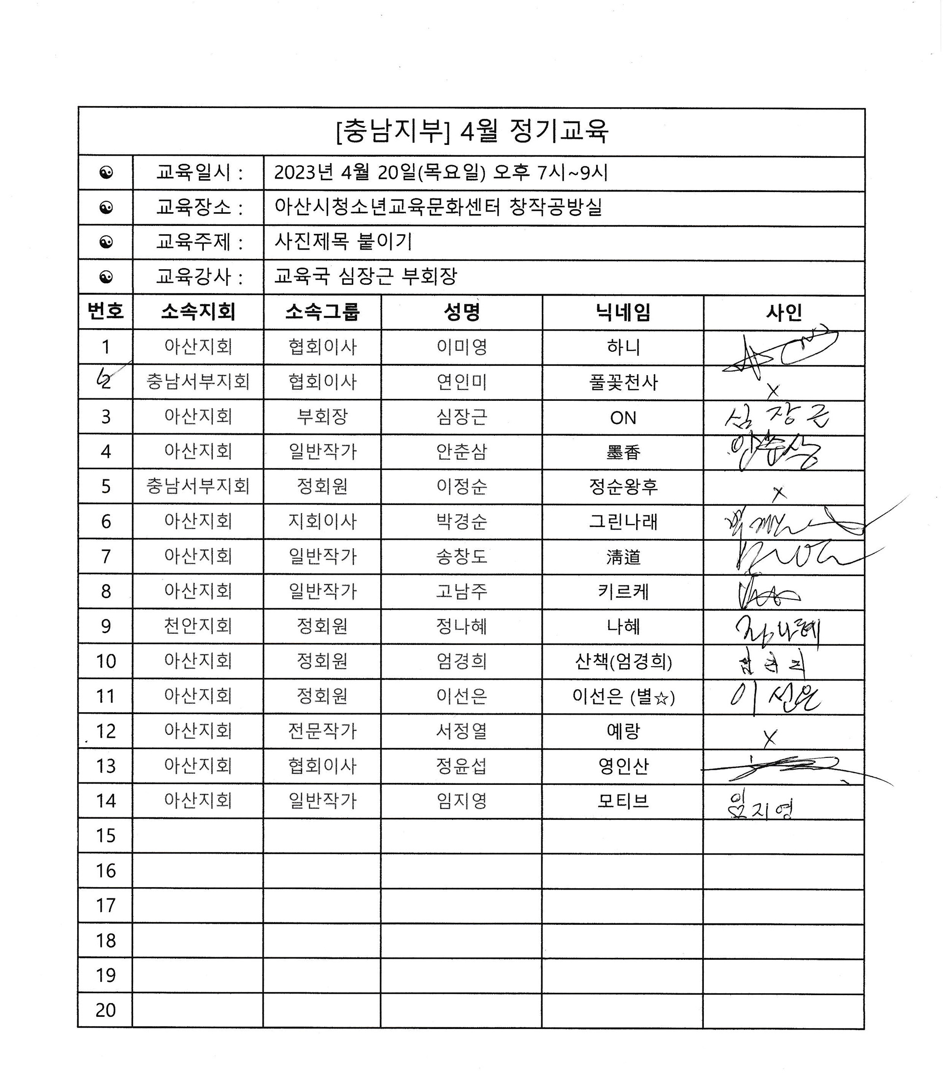 사)한국디지털사진가협회 인천지부04월 교육정모 참석자 포인트 신청