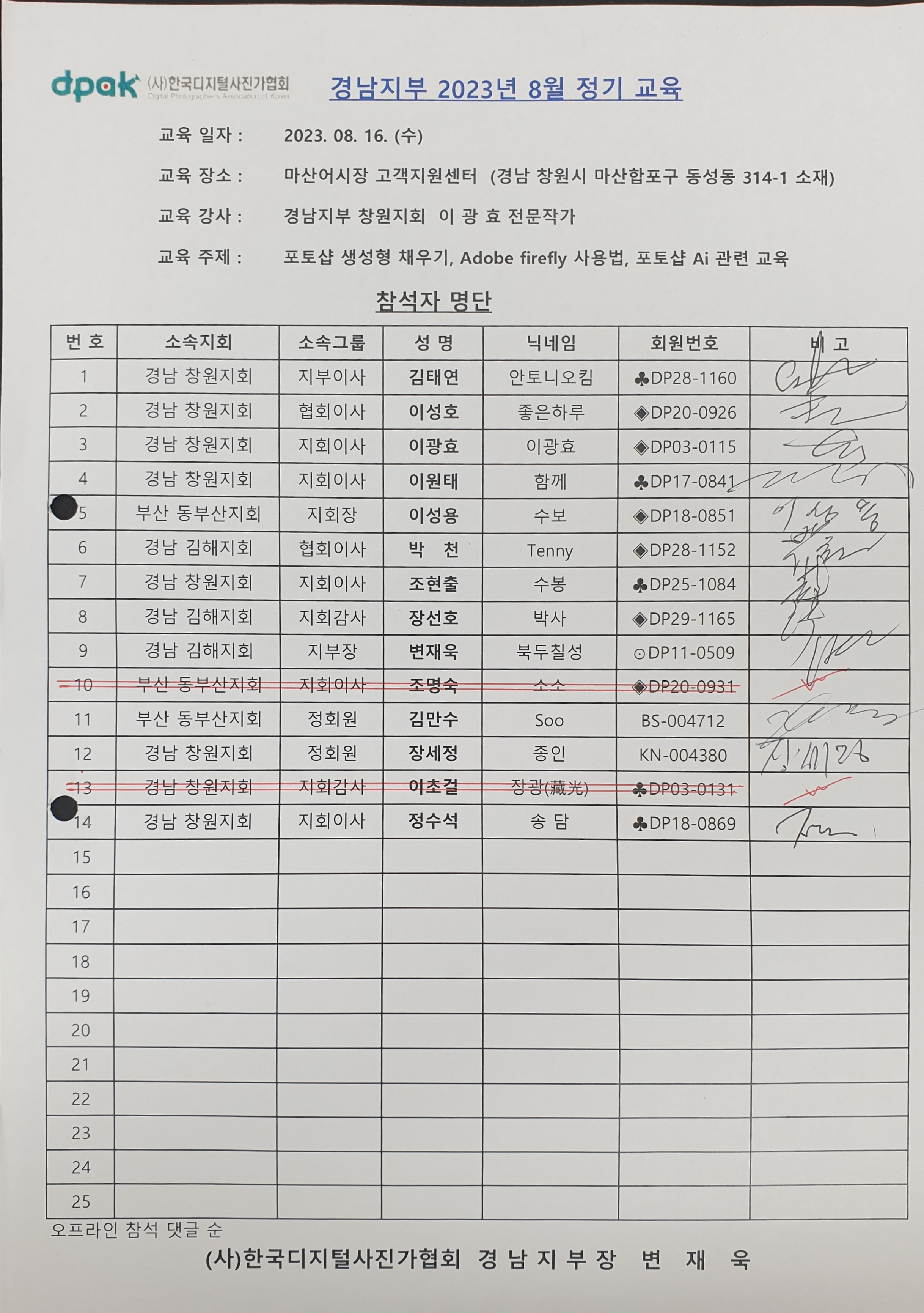 2023년 8월 경남지부 정기교육에 따른 활동포인트를 신청합니다.