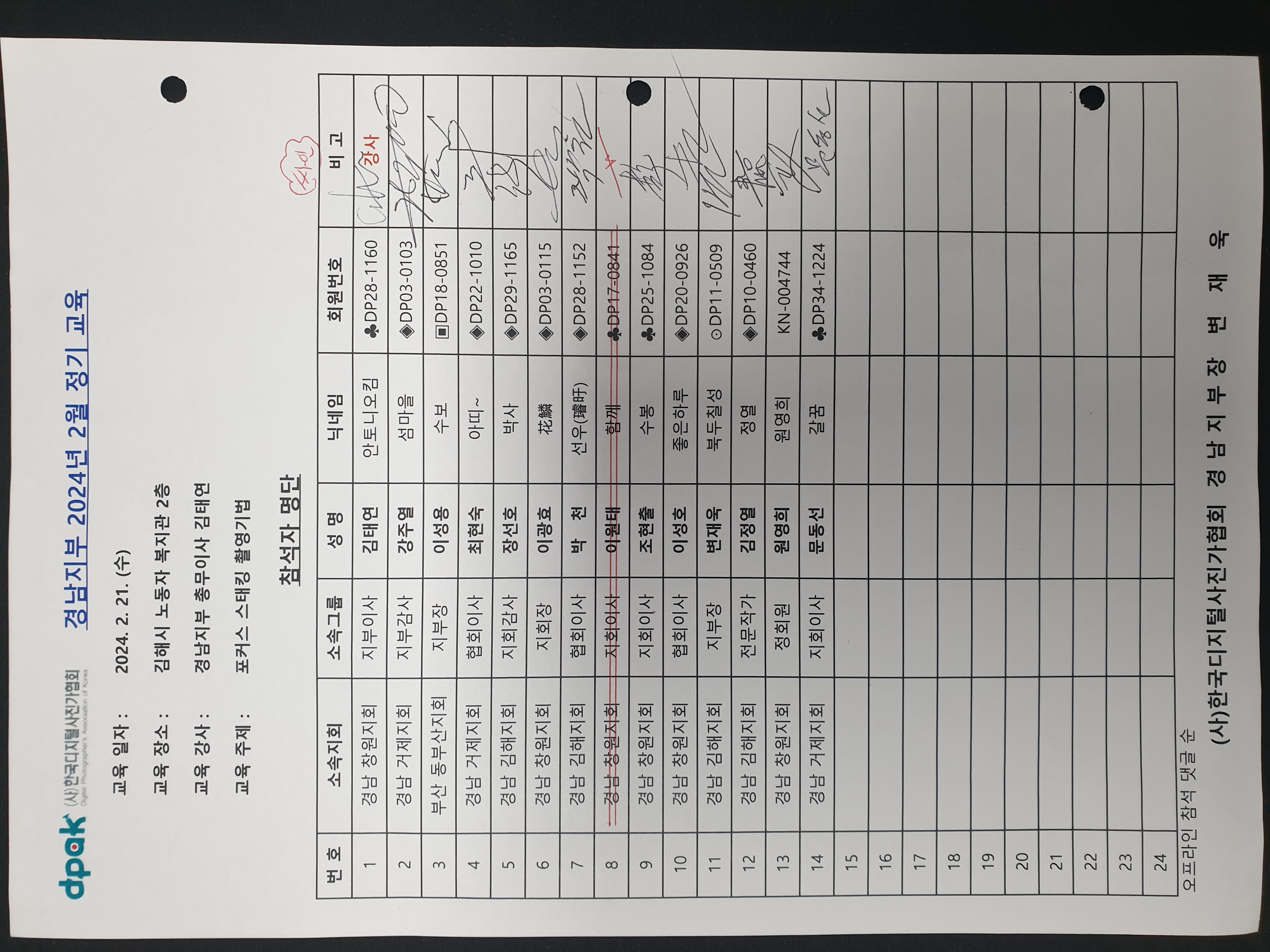 2024년 2월 경남지부 정기교육에 따른 포인트를 신청합니다.