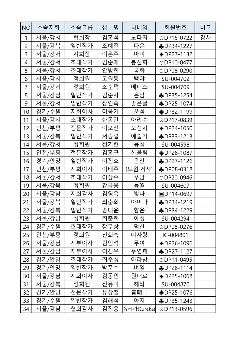 [연수실] 장노출 6개월반 4차 출사 참석자 명단