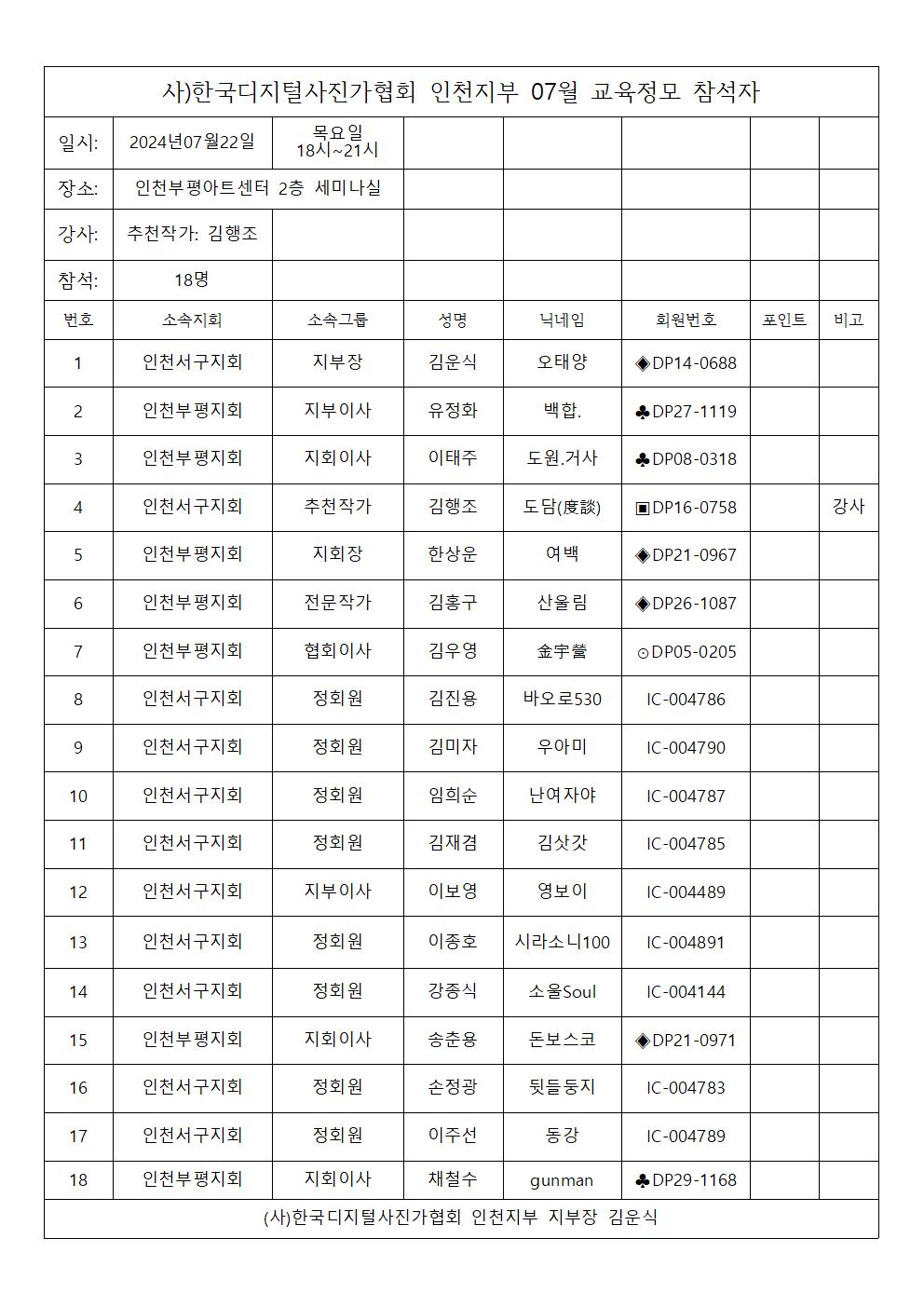 [연수실] 장노출 6개월반 포토샵 카메라 기능교육 참석자 명단