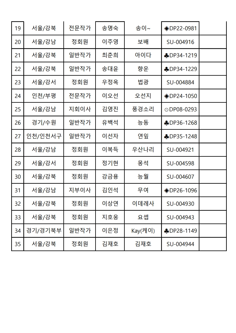 [연수실] 장노출 6개월반 8차 출사 참석자 명단
