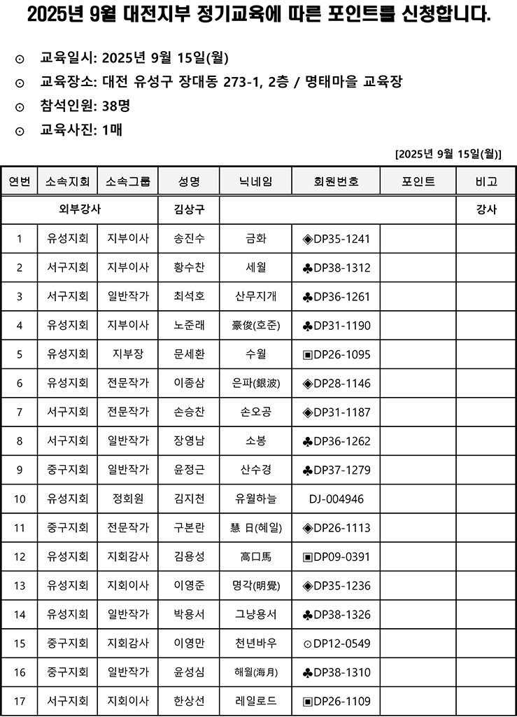 [대전지부] 9월 정기교육에 따른 포인트 신청