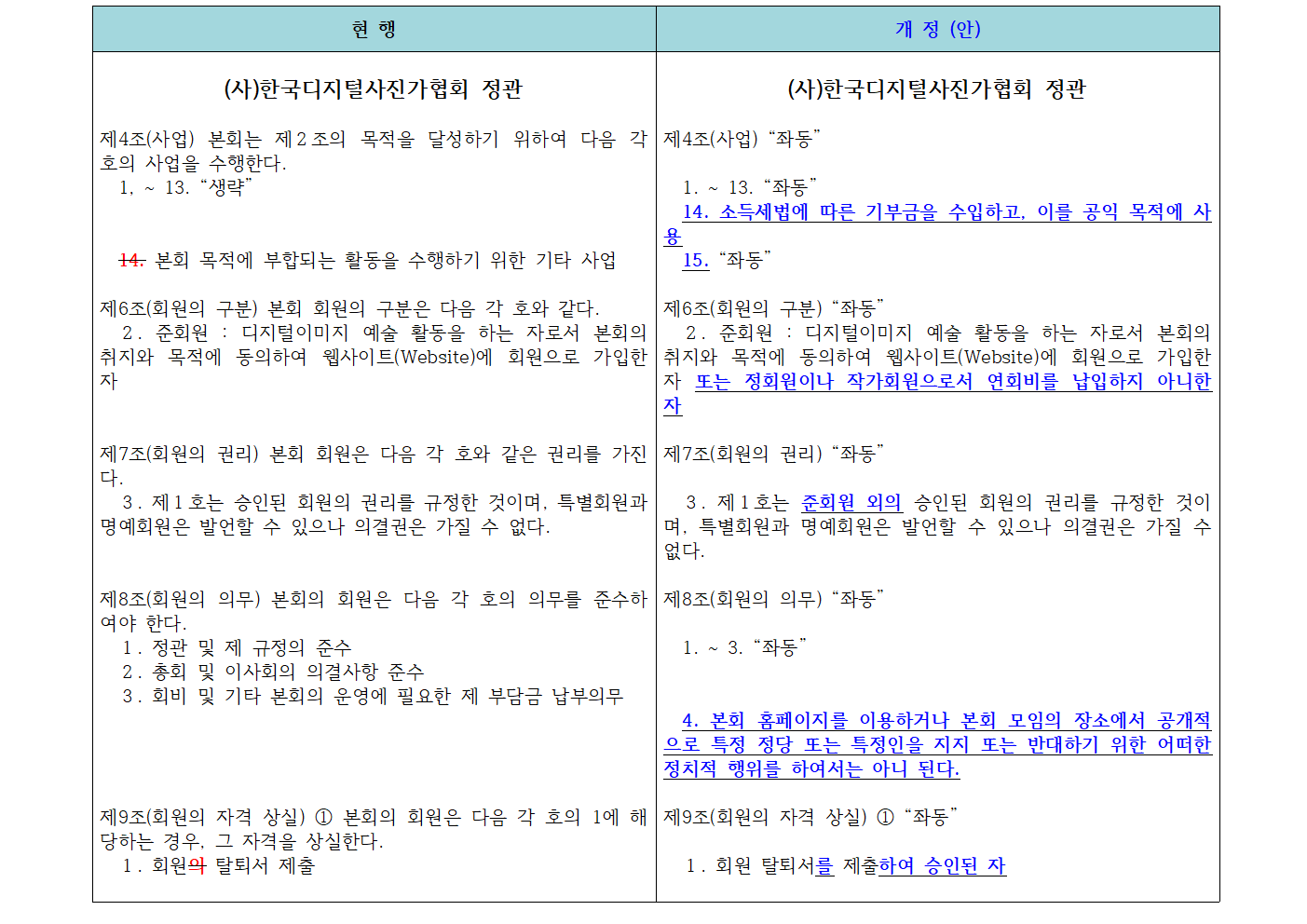 <붙임> (사)한국디지털사진가협회 정관 개정(안) 신구대비표