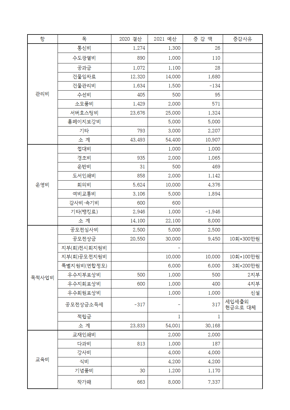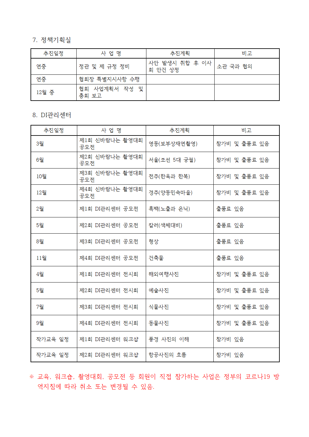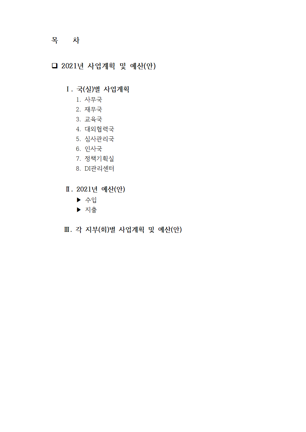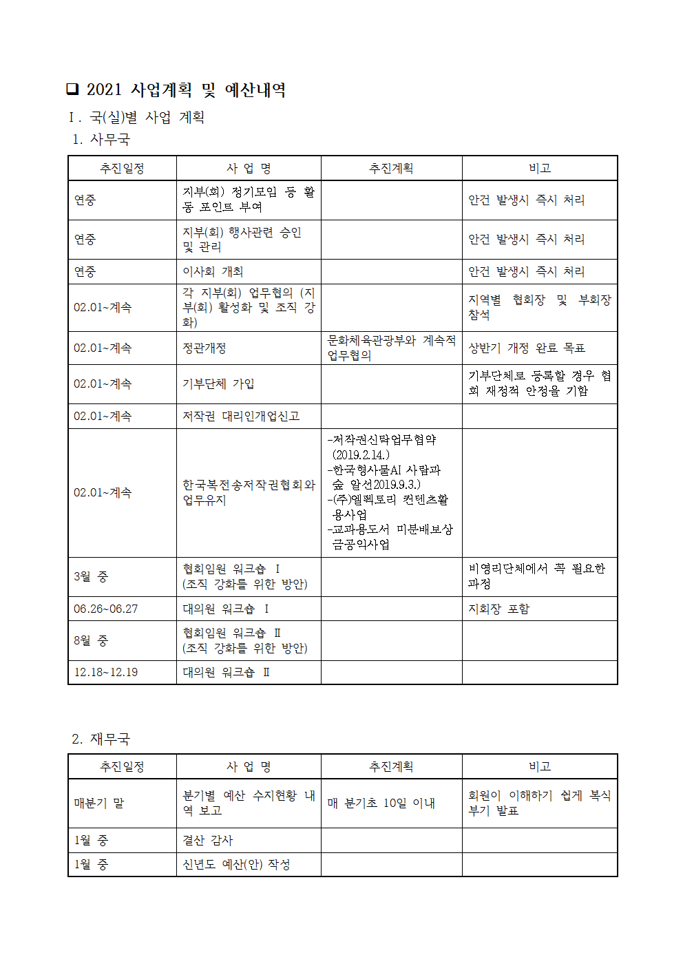 <붙임> 2021년 사업계획 및 예산(안)