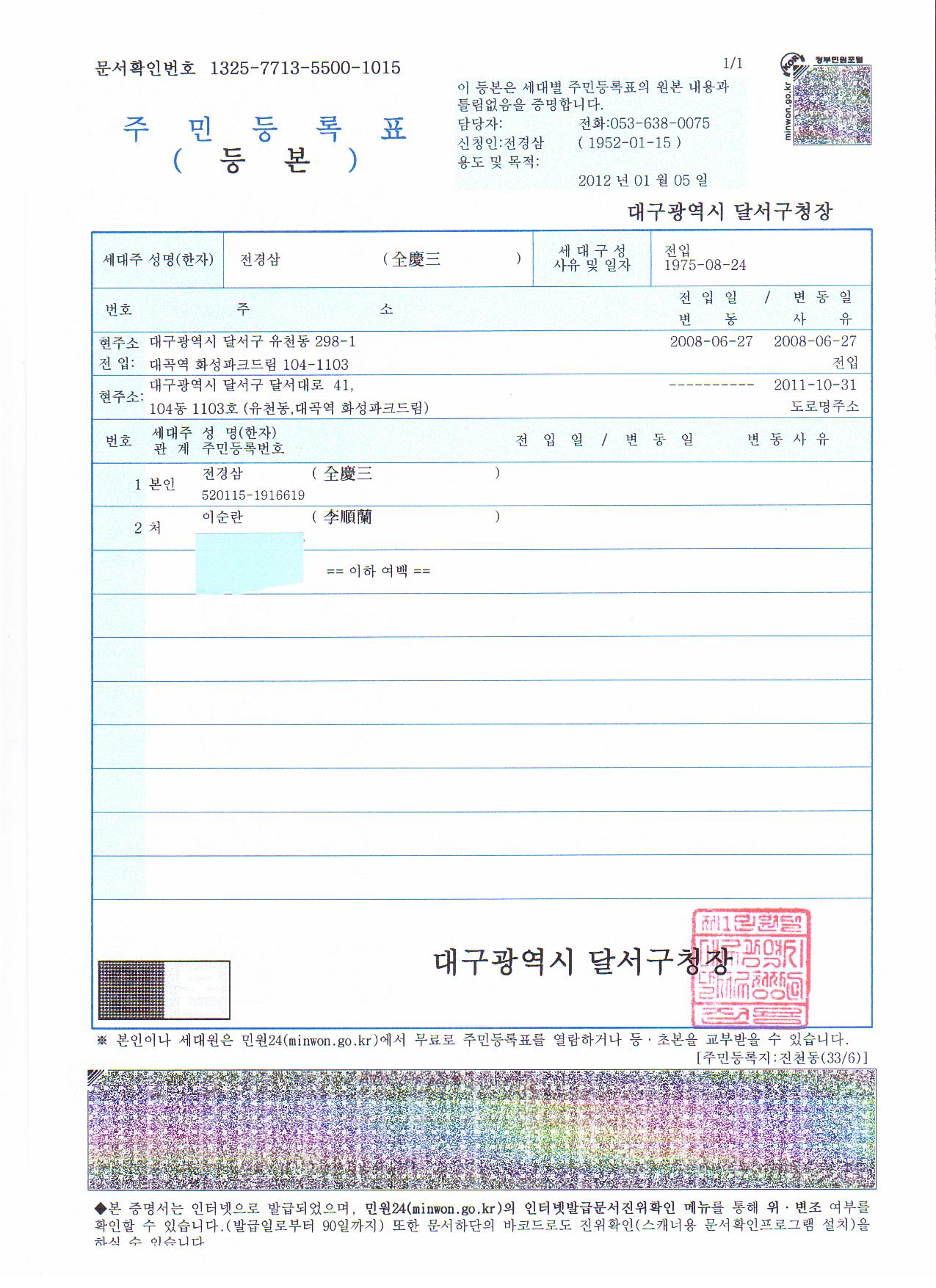 취임 승낙서 첨부 서류(주민등록등본)