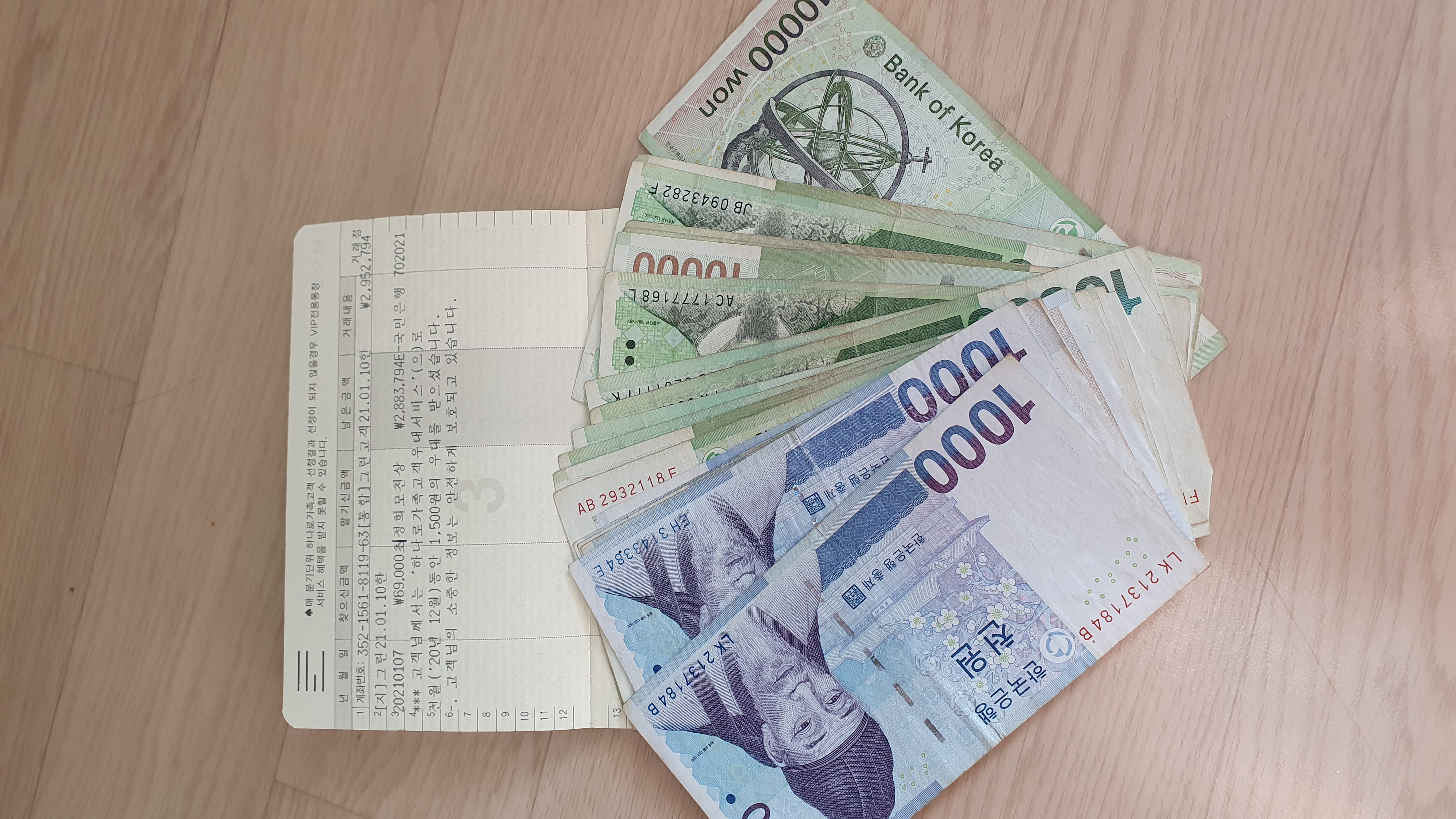 2021.01.07결산총잔액 +통장현금총수입 552,319총지출 1,180,010 통장잔액2,883,794