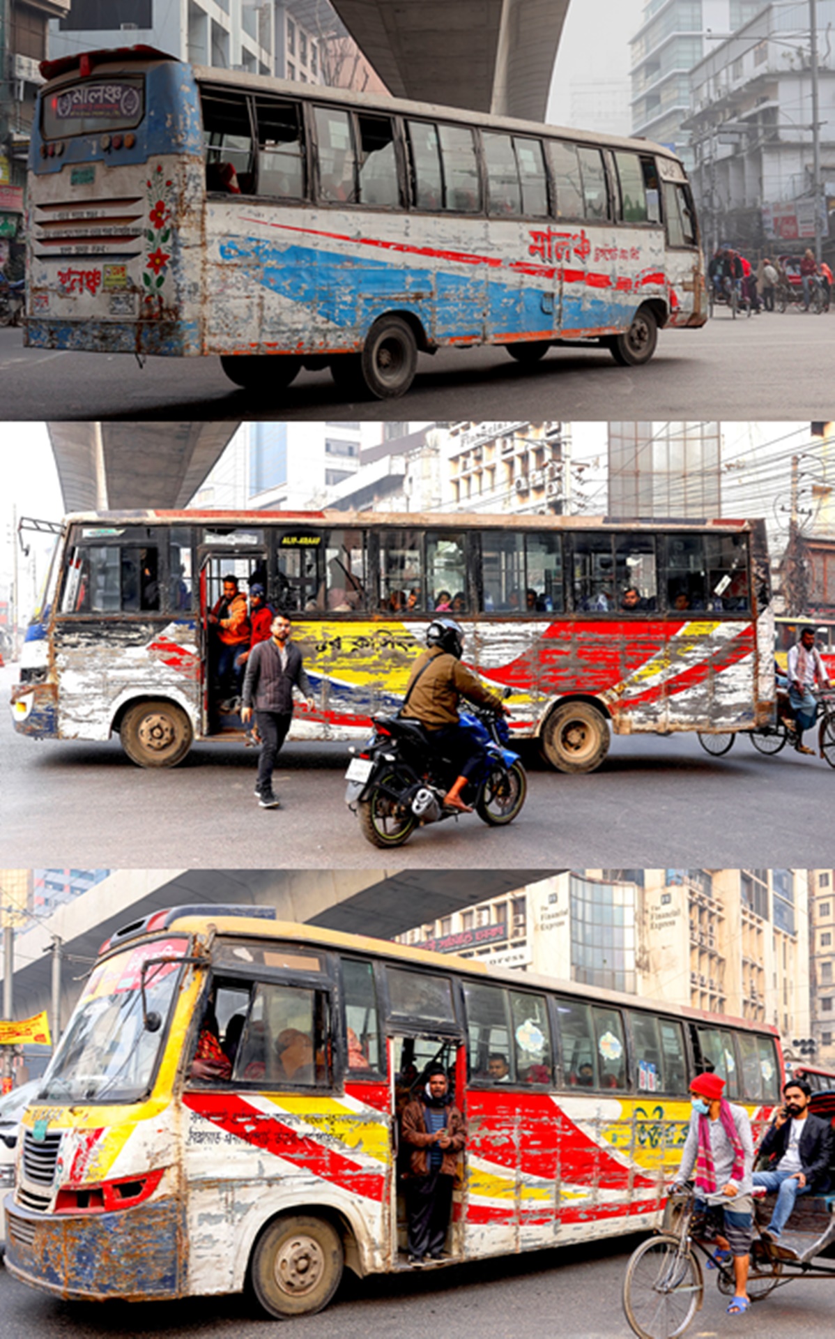 페차장에서나 볼 수 있는 버스가 방글라데시 수도 다카에서는 쌩쌩 잘 달리고 있다.