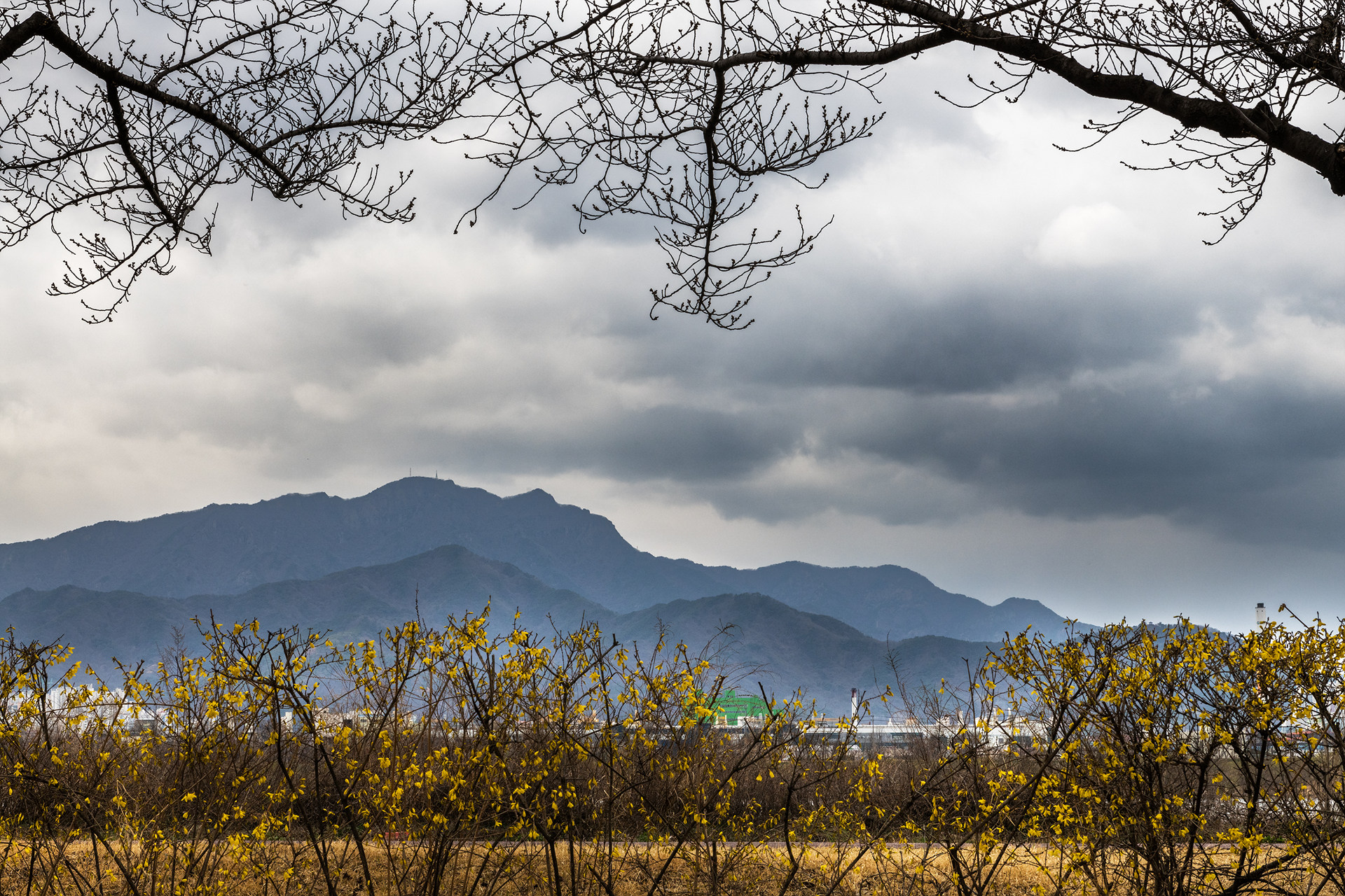 구미 동락공원에서 보는 금오산은 누워있는 부처님 모습 같답니다.