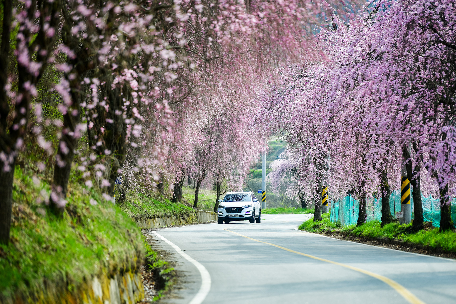 분홍색 수양벚꽃이 있는 거창에서