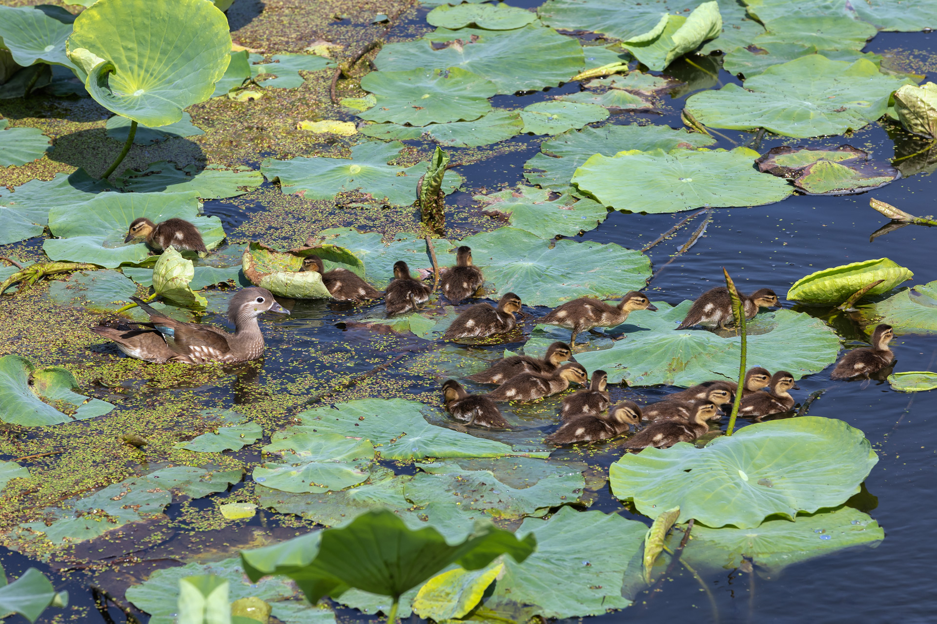 빈기운 마음에 담은 원앙의 육추장면이다