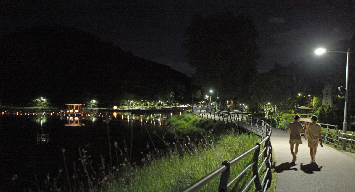 운암지 수변공원의 야간 산책길입니다.
