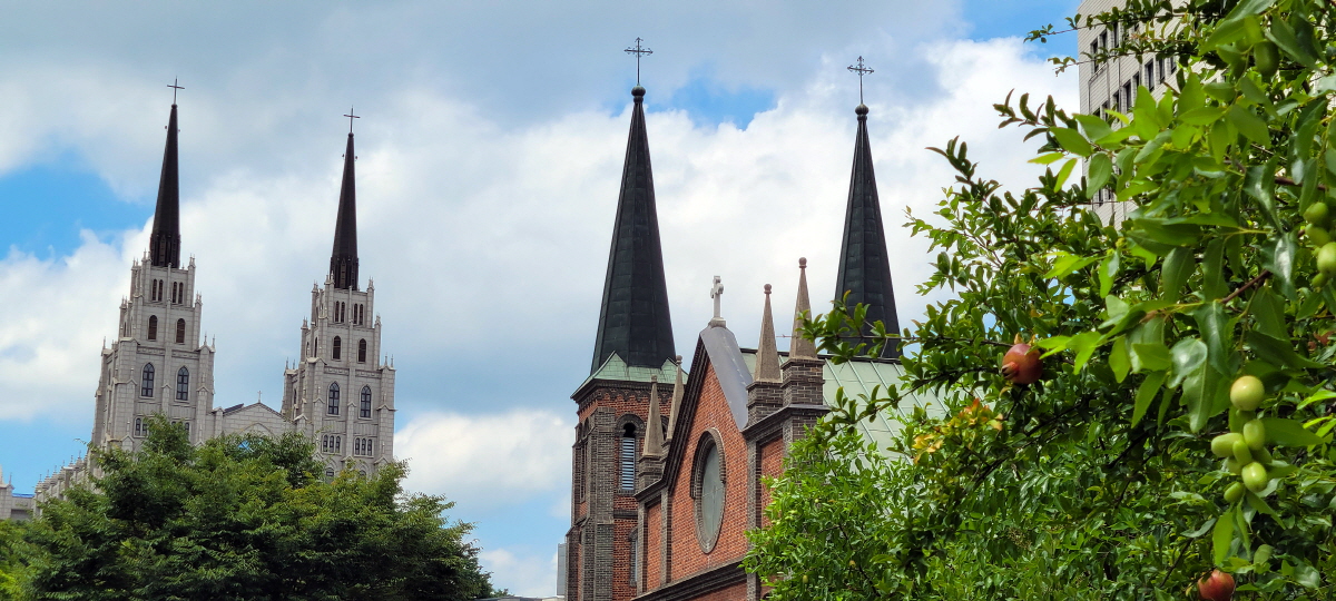 대구 제일교회와 계산 성당이 마주 보고 있습니다.