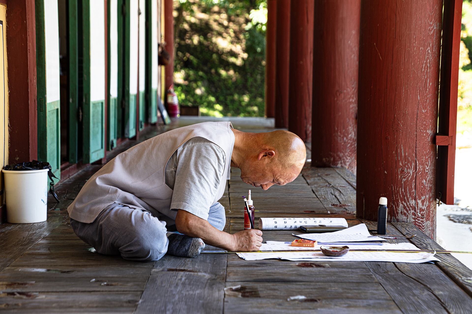 열심히 필사를 하시는 스님께 한 컷을 부탁 드리다.