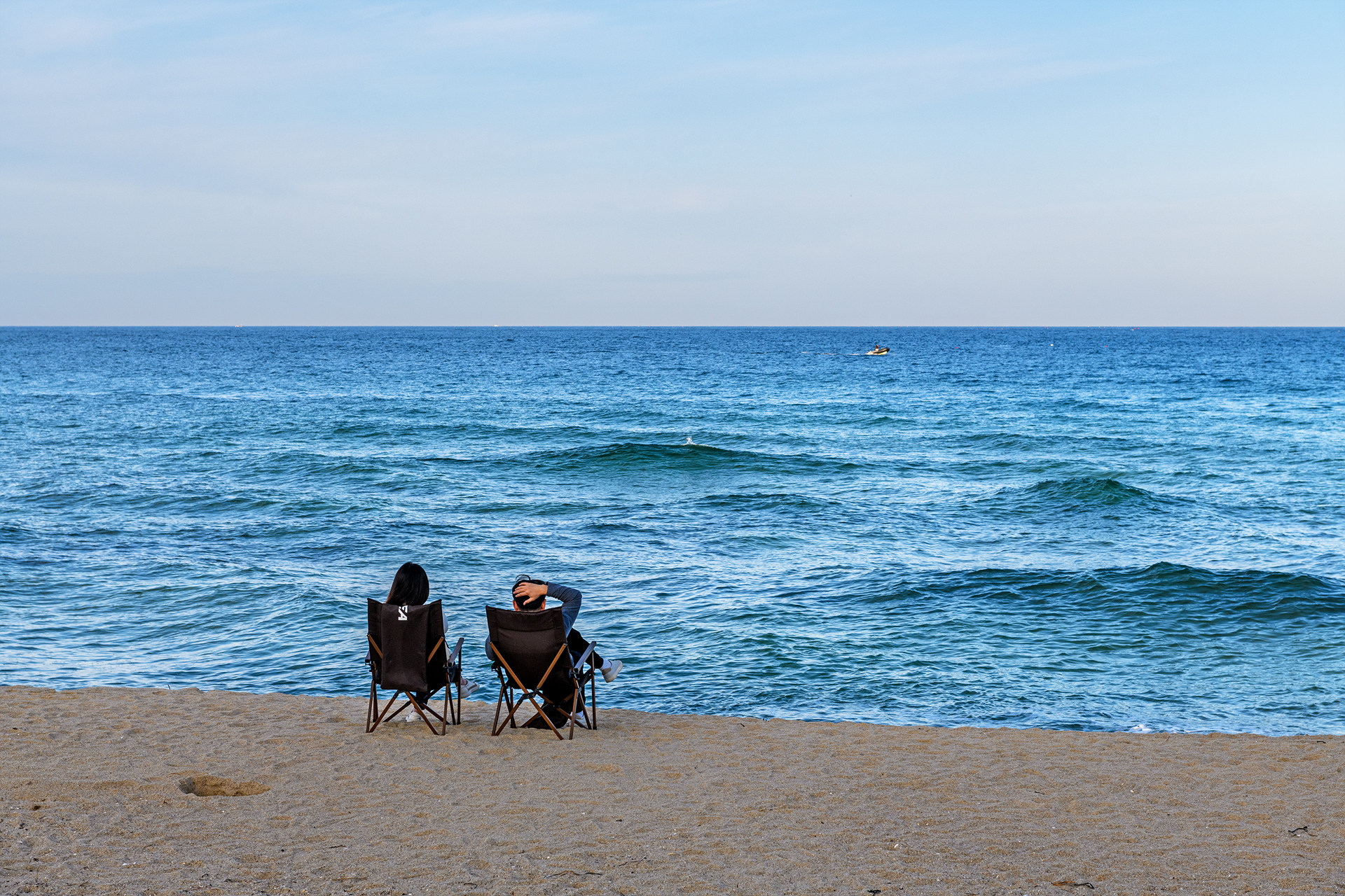 바다가에서 망중한을 즐기는 연인들