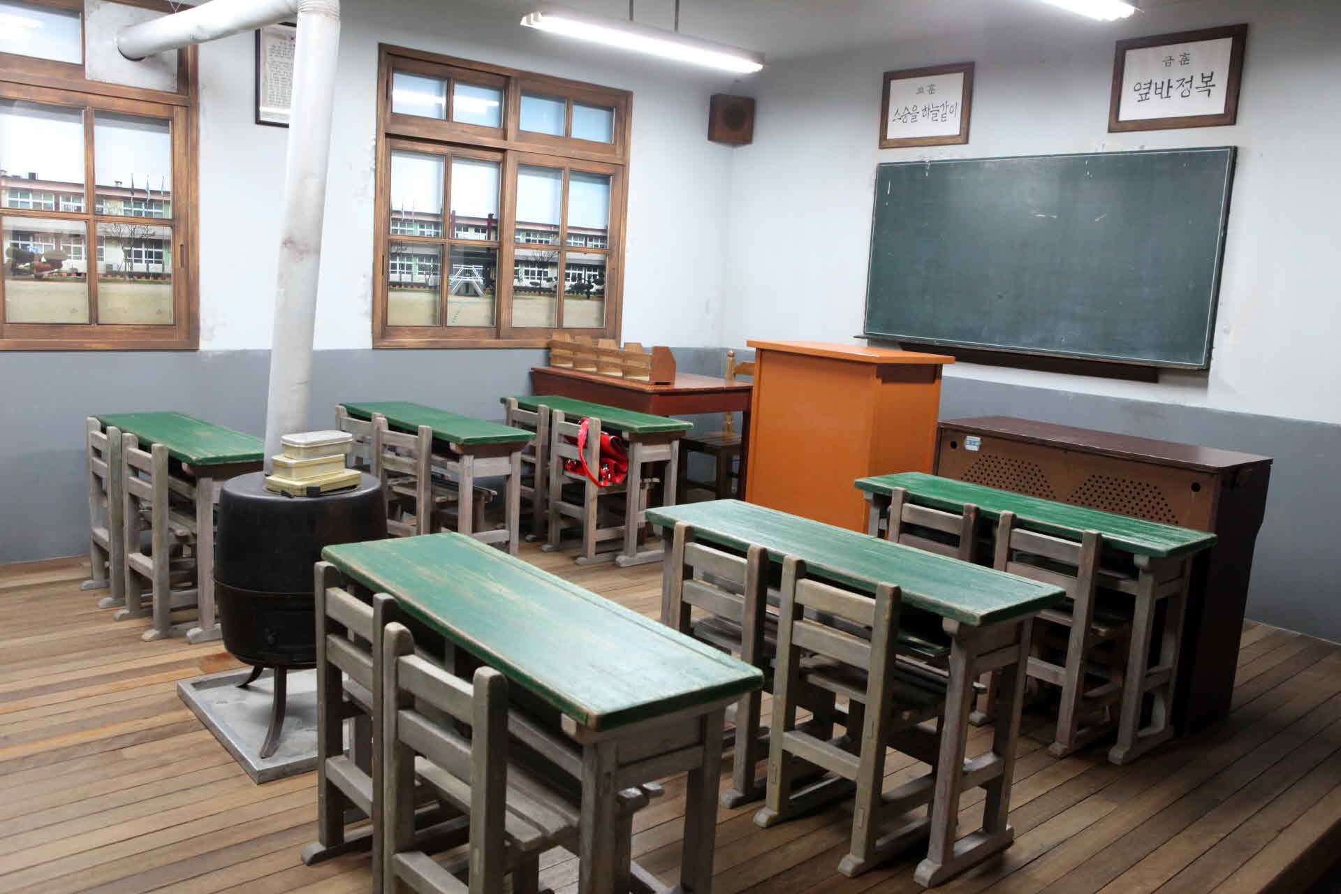 옛날 우리가 학교 다닐 때는 이런 교실에서 공부를 했지요.