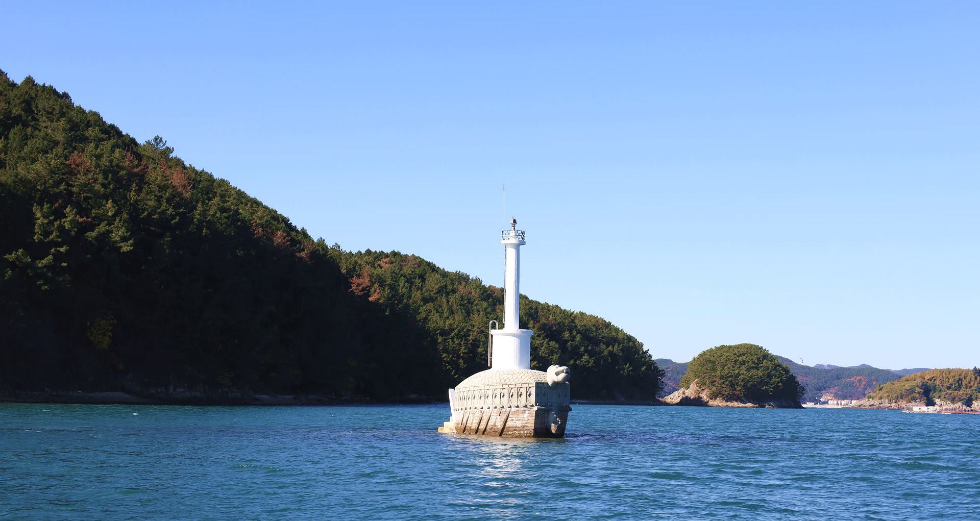 통영 한산도 앞바다 암초 위에 세워져 조난을 막고 거북선 등대 용머리는 일본 도쿄를 바라보고 있다 합니다.