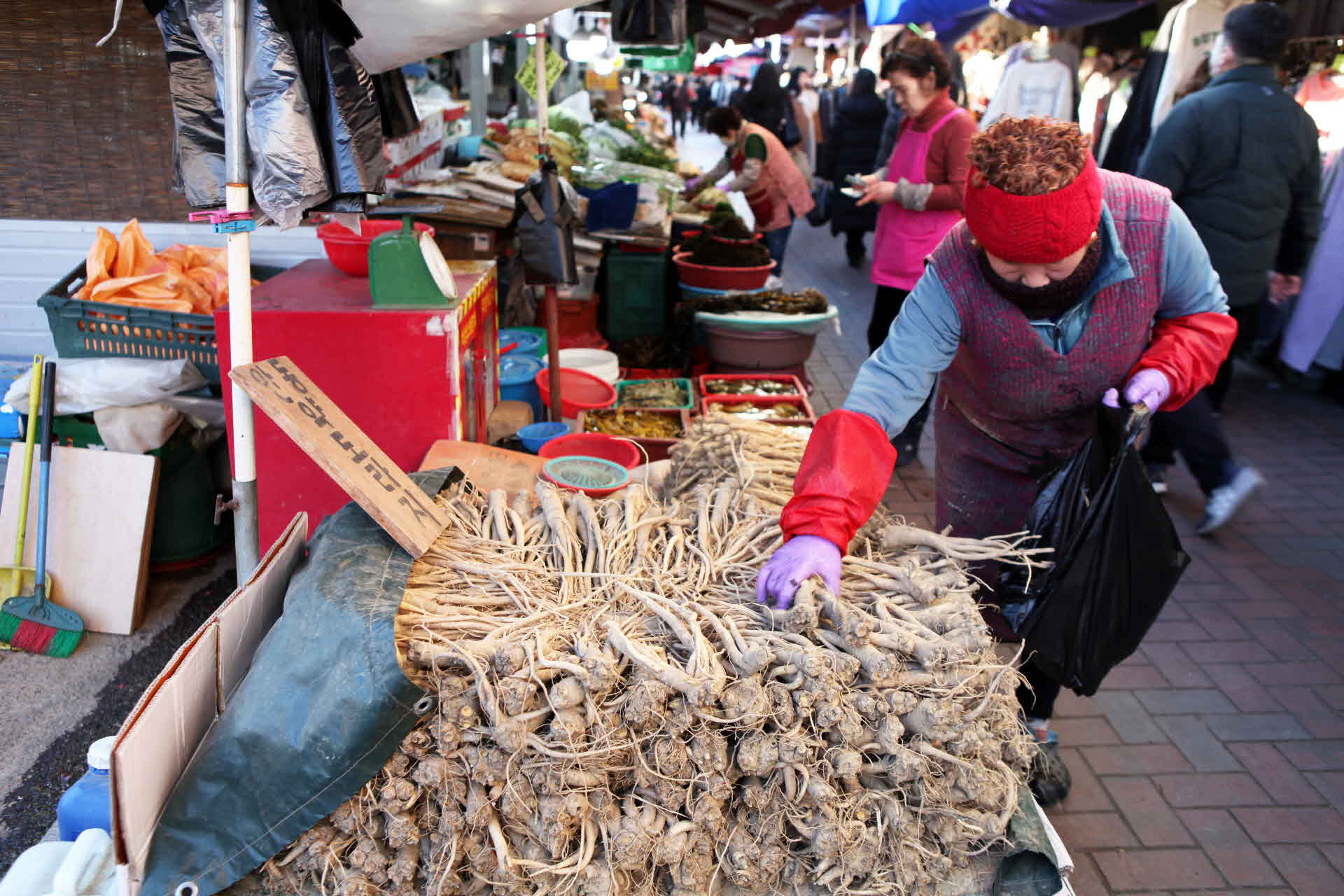 추운 날씨에도 시장 사람들은 바쁘게 움직이고 있었습니다.