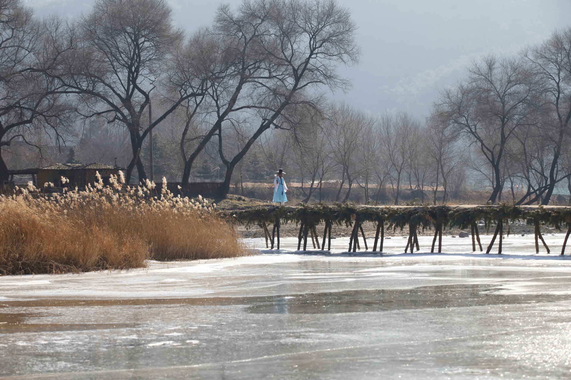 꽁꽁 얼어붙은 겨울철 강원도 영월 섶다리 풍경입니다.