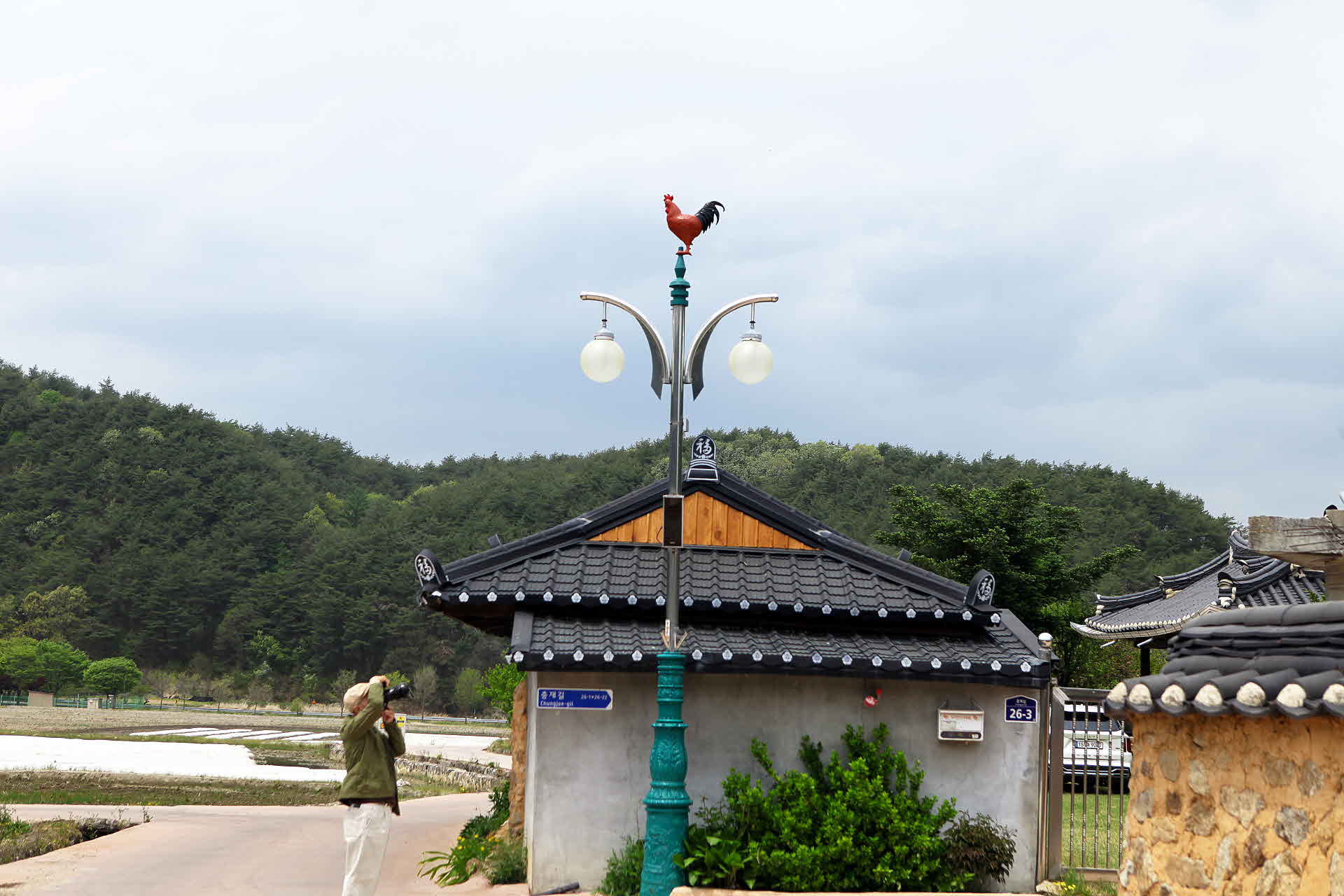 닭실마을 가로등 위에는 장닭이 올라가 있었습니다. 대구지부 수시 출사에서 담았습니다.