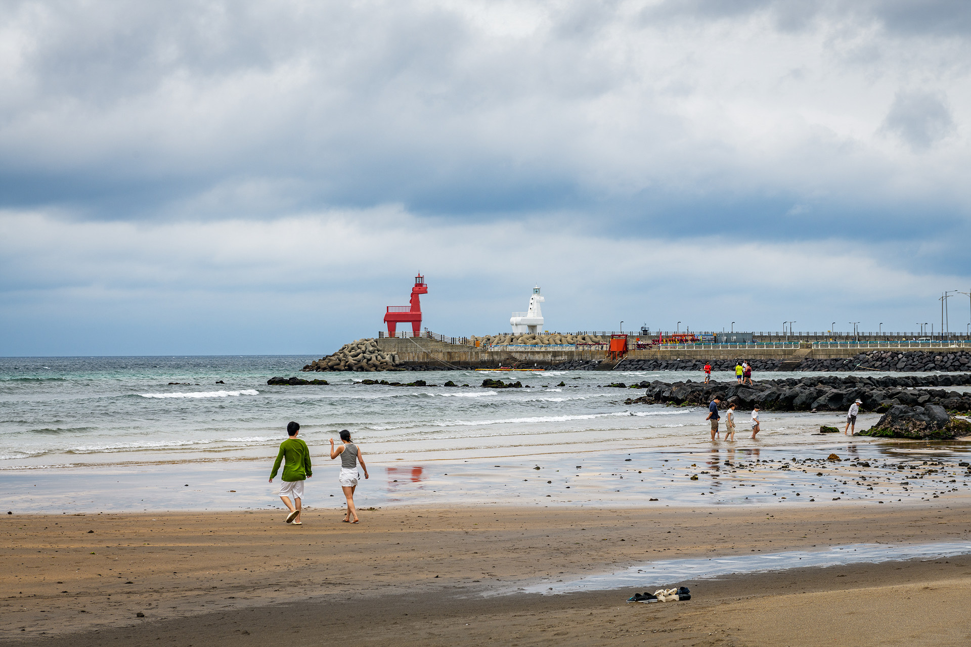 이호항의 빨간말등대와 하얀말등대가 있는 풍경