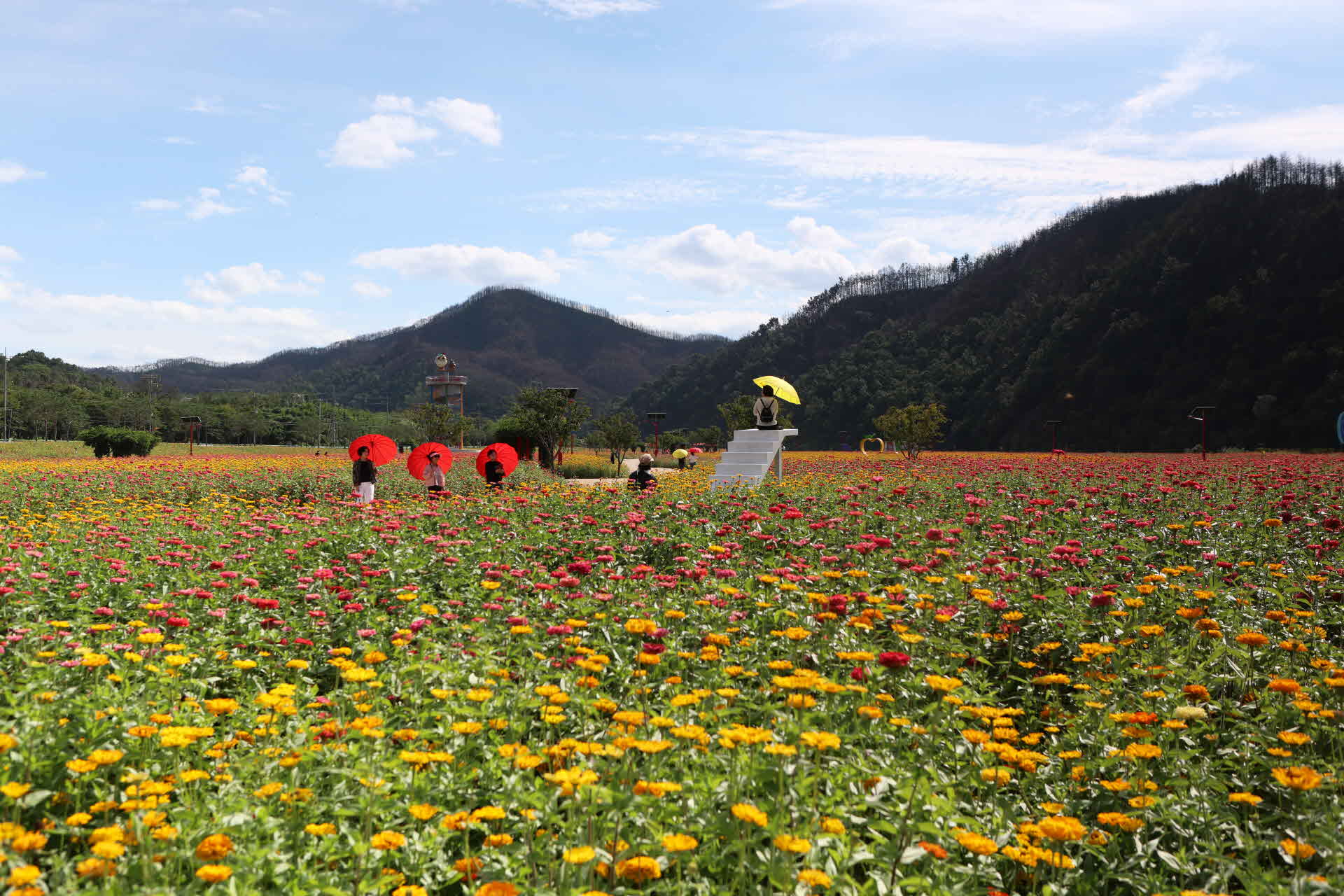 산소카페 청송정원에는 백일홍이 바다를 이루고 있어 멋집니다.