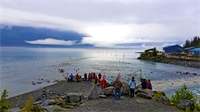 연어떼 구경하는 사람들