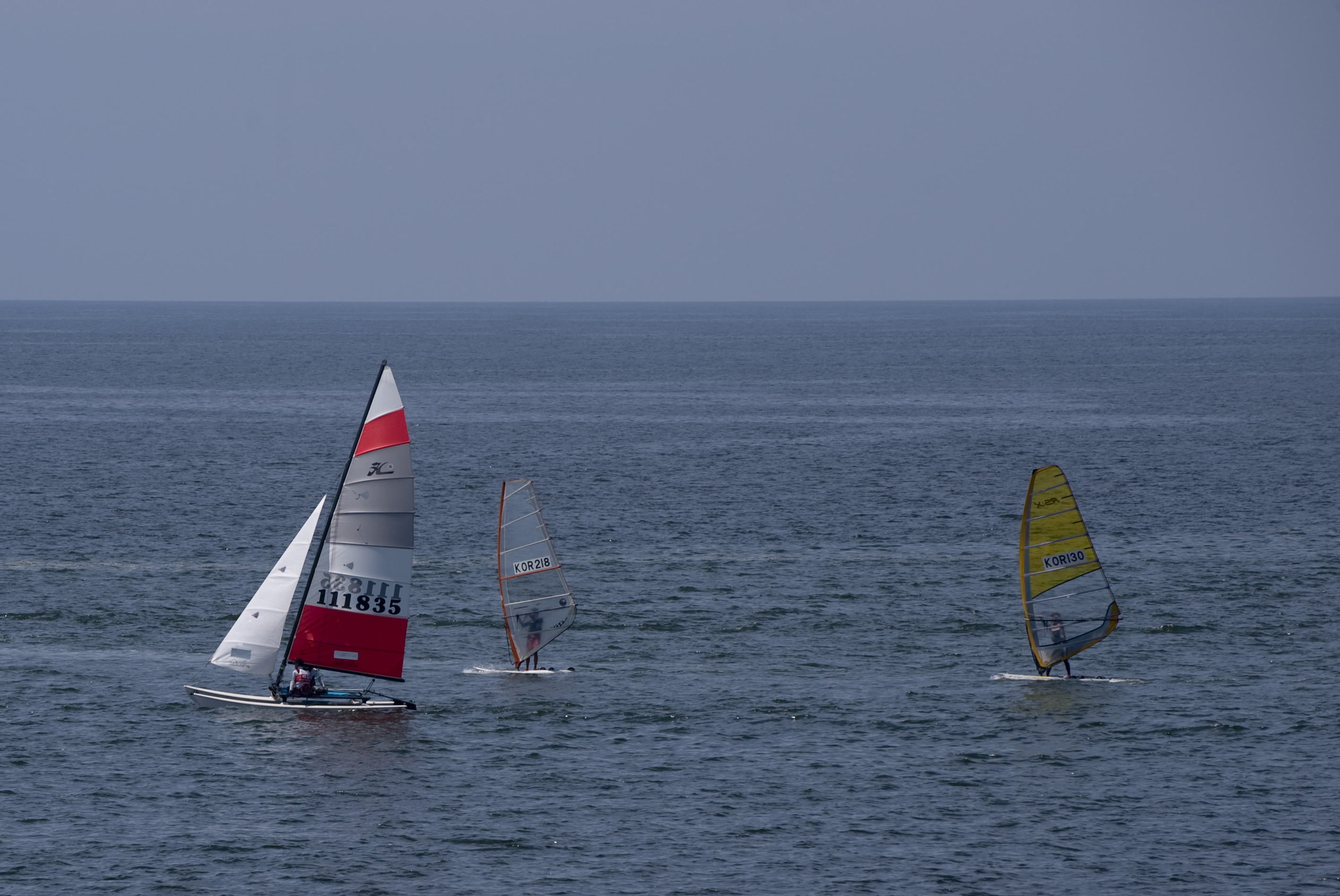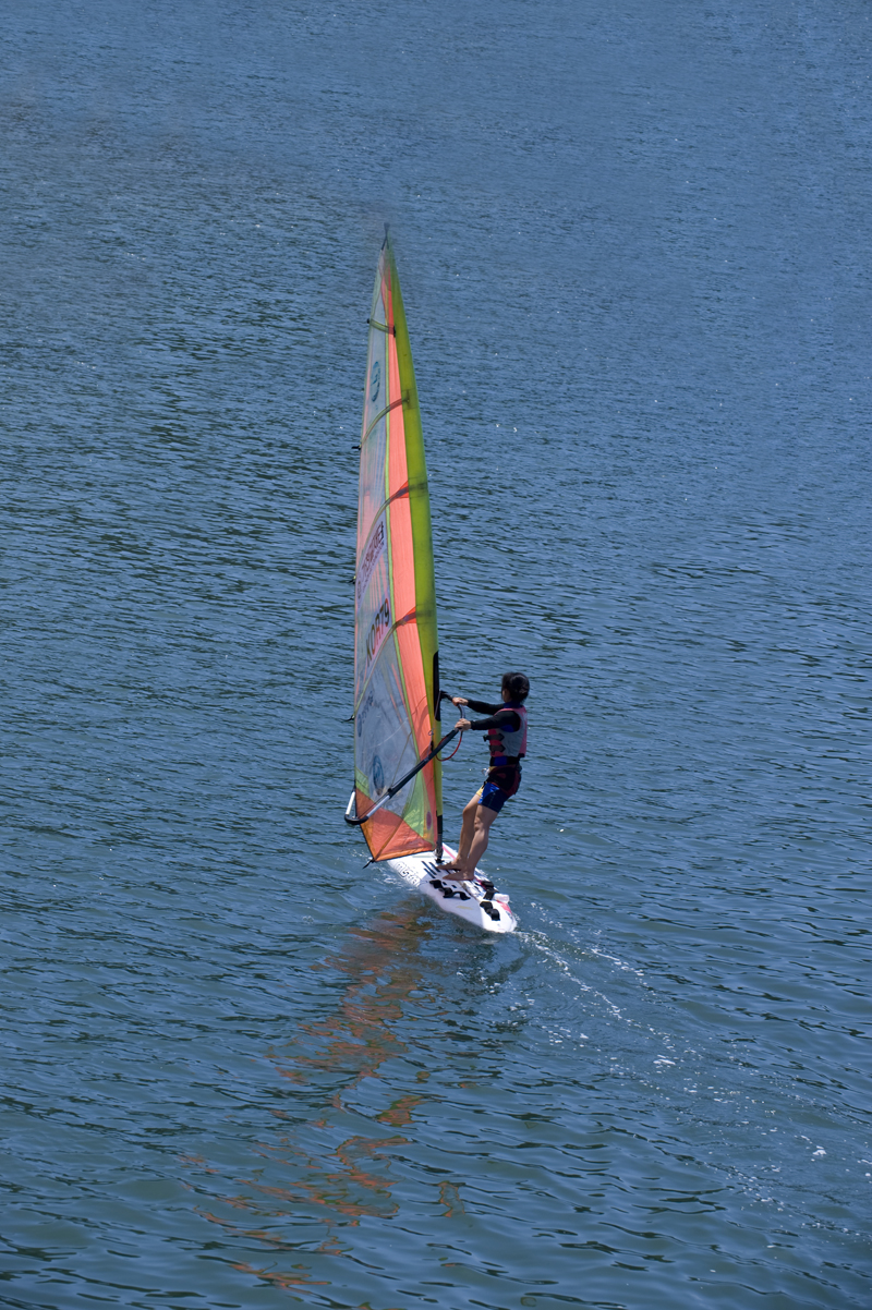 바람을 받아 물살을 가르며 달리는 윈드서퍼의 즐거운 한   때...