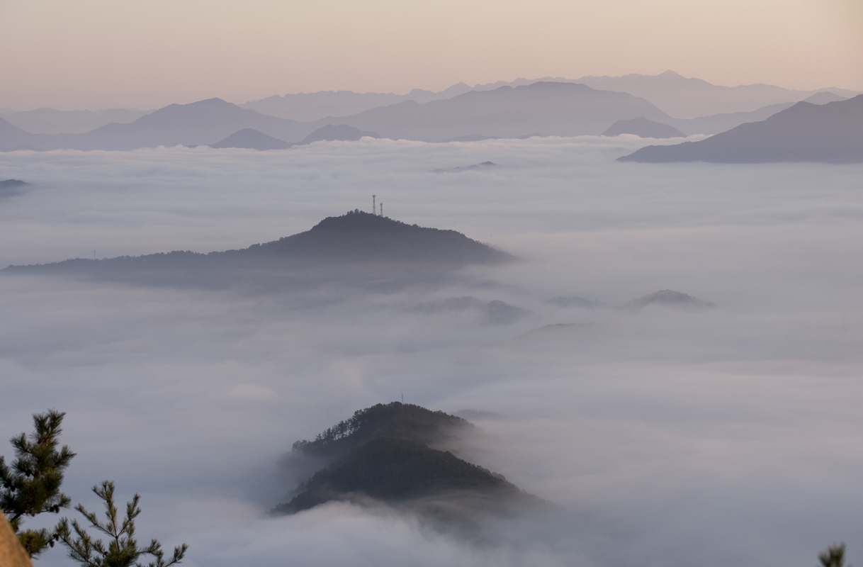 운해가 짙게 깔린 일교차가 크던 날 용암사의 새벽 녘 풍경입니다.