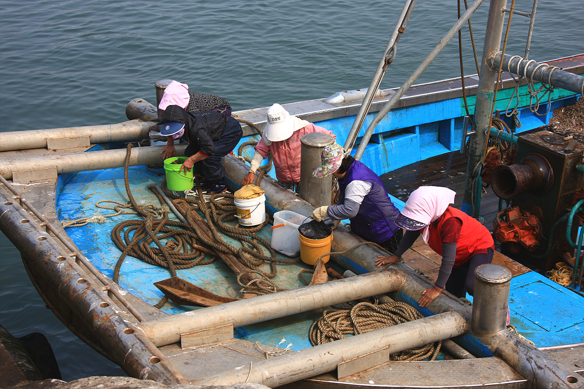 바닷에 나가 뱃일 끝내고 귀가 길에 오르는 아낙들